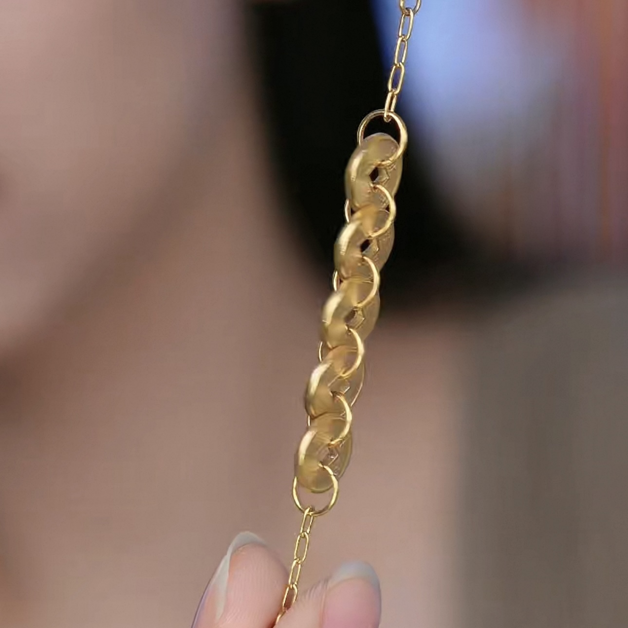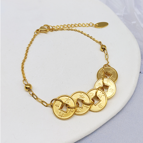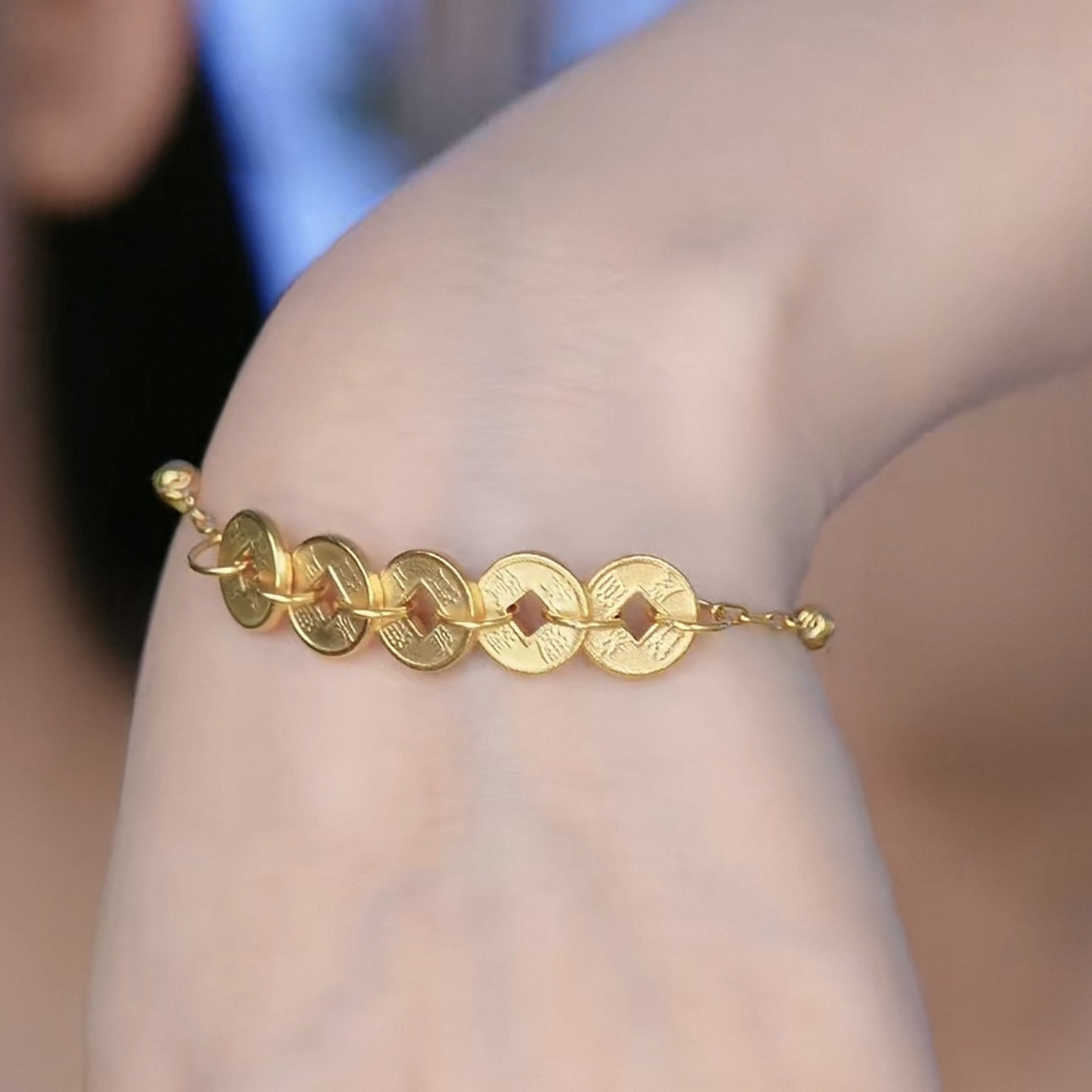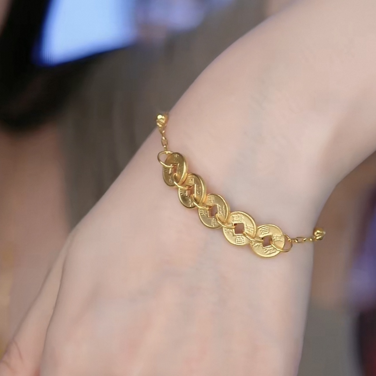 旭平优雅复古穿搭仿黄金色时尚合金铜钱手链手饰