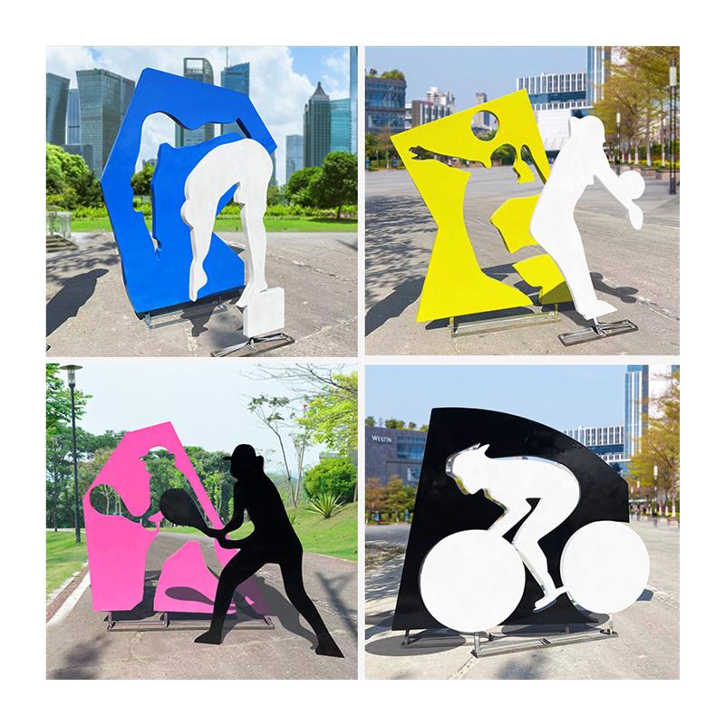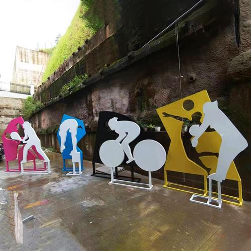 运动小品人物剪影雕塑小区露营公园学校自行车网球运动员摆件定制