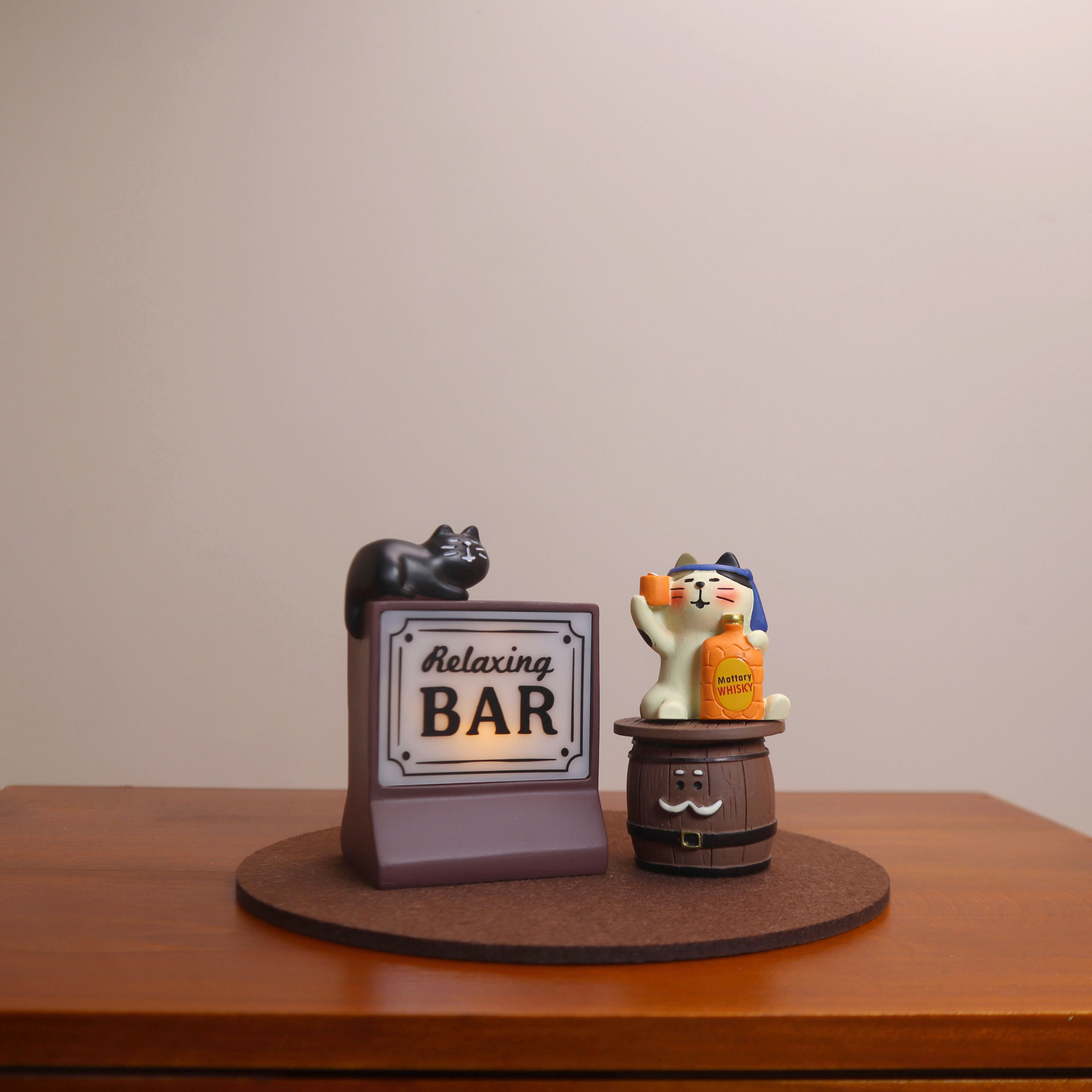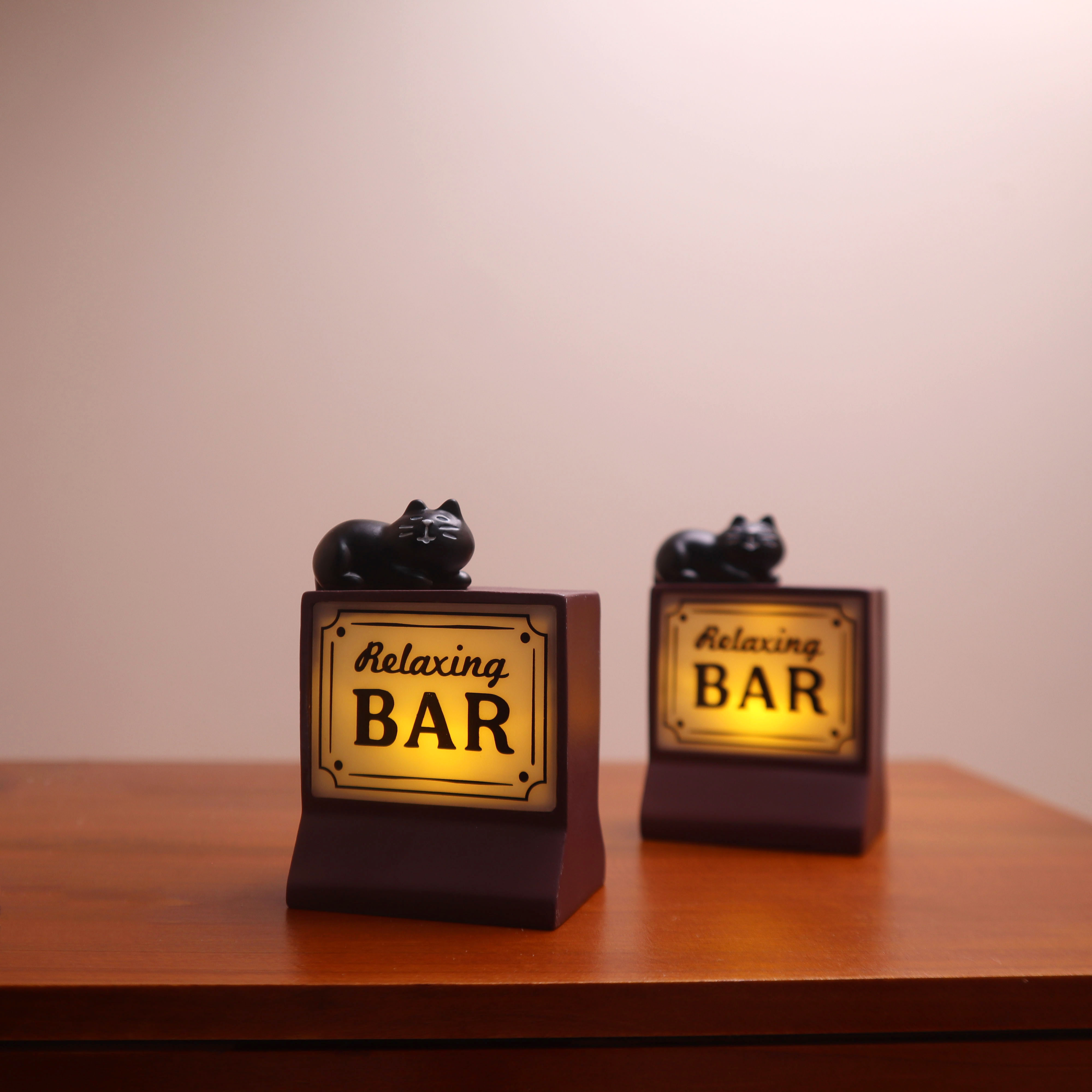 可爱猫咪小夜灯酒吧微缩场景迷你桌面ins氛围感装饰摆件咖啡吧台