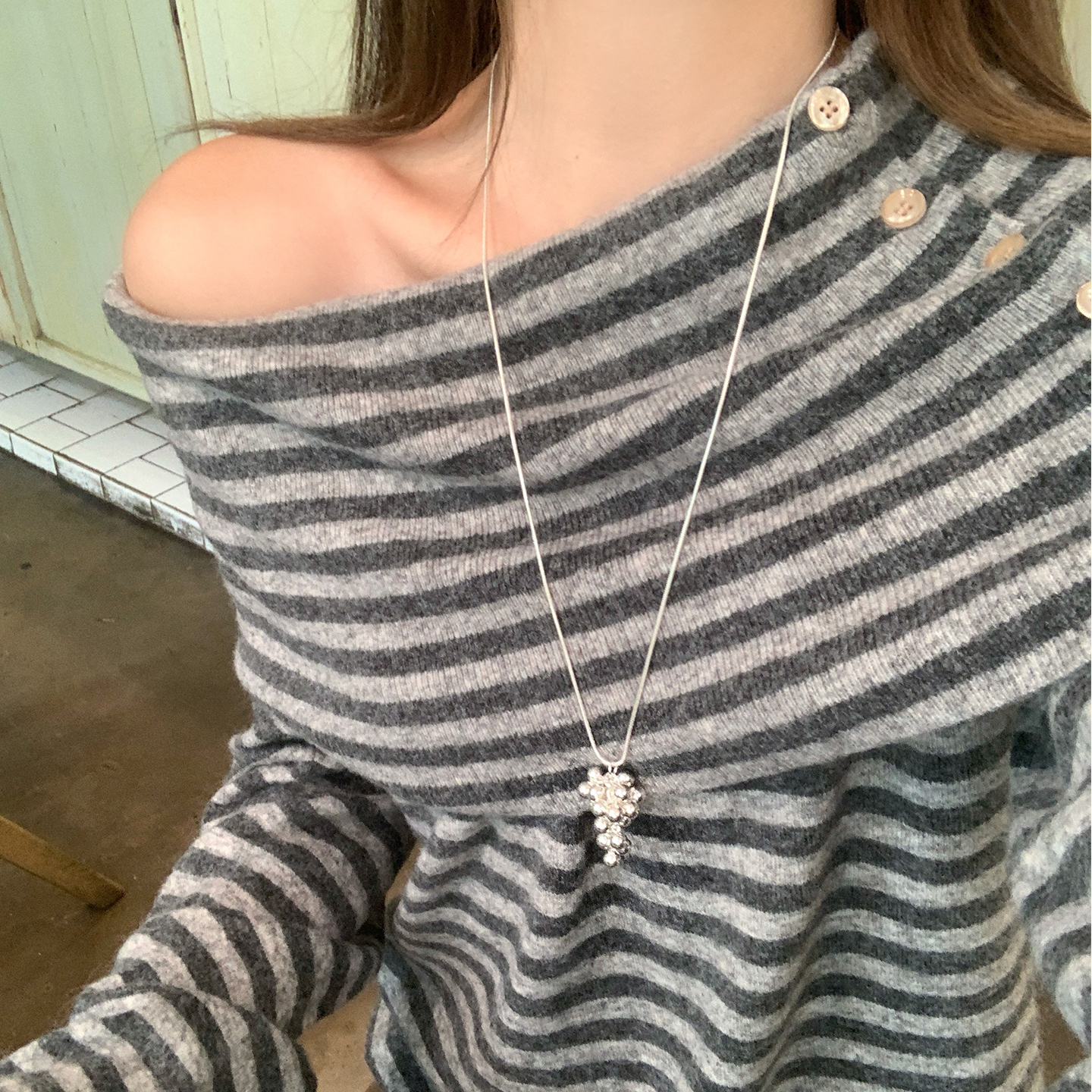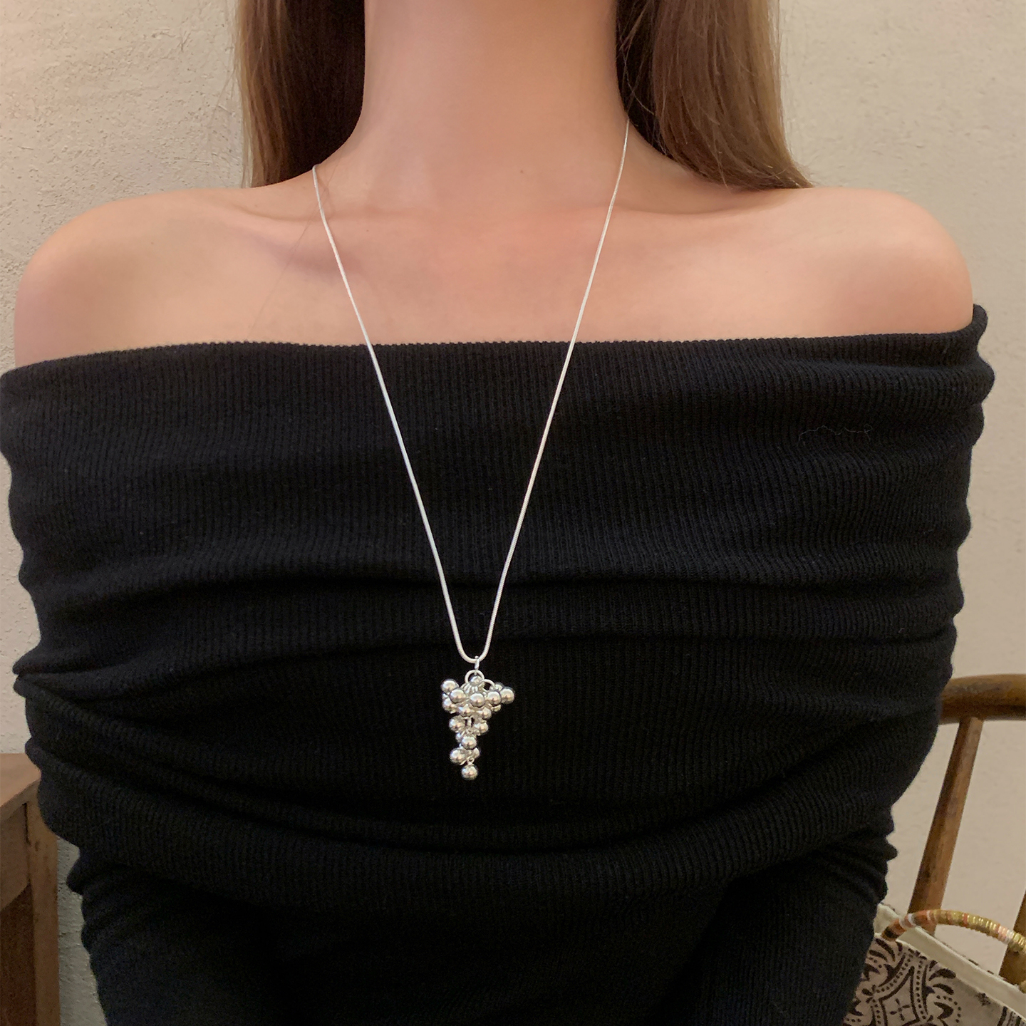 【我的脸很圆】韩系ins风银色串珠葡萄吊坠项链简约高级感毛衣链