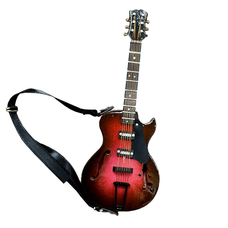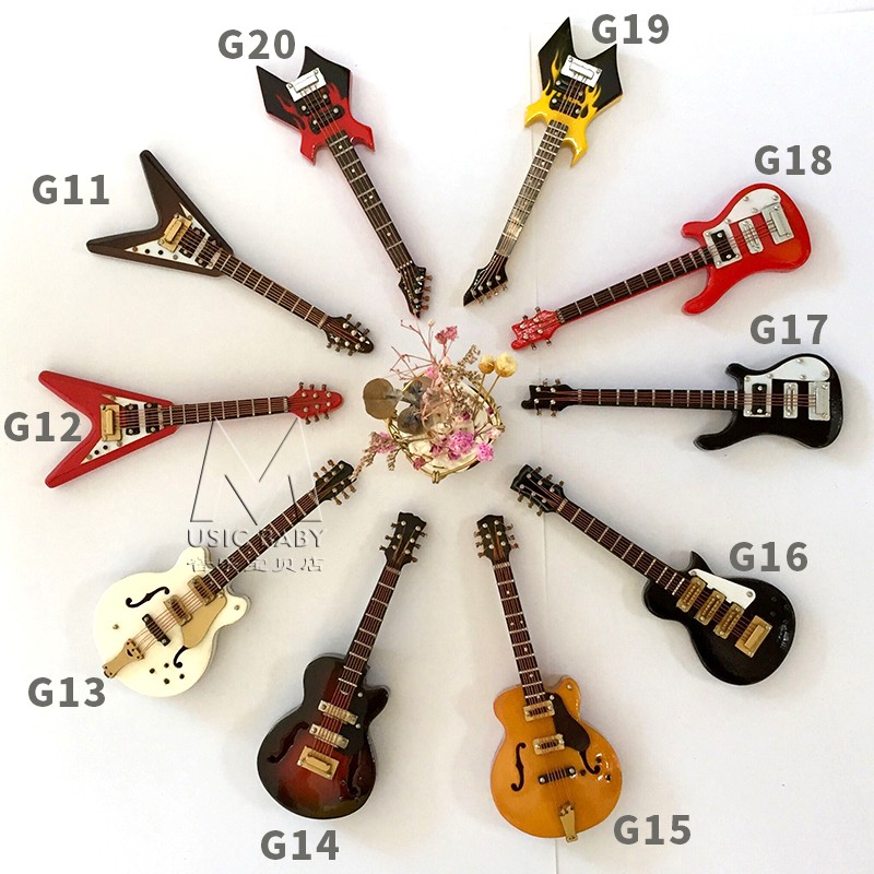 手工迷你电吉他模型摆件桌面娃娃乐器10cm木质民谣吉他电贝斯模型
