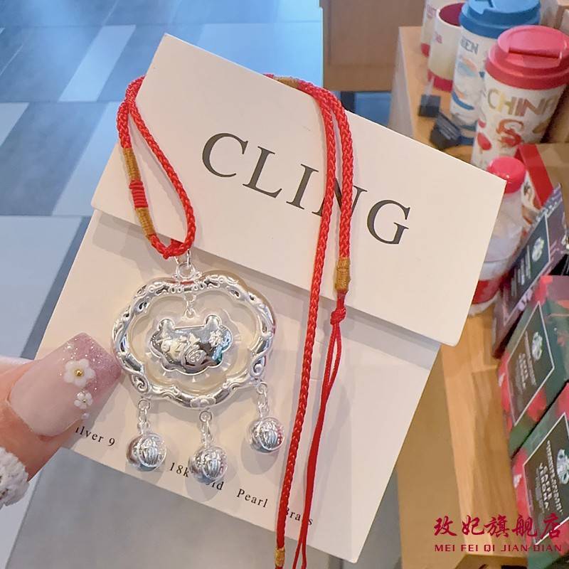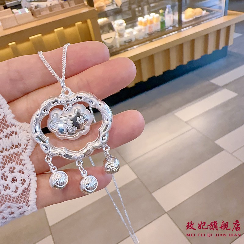 香港正生百福长命锁包铃铛纯银项链足银999男女宝宝满月周岁礼物