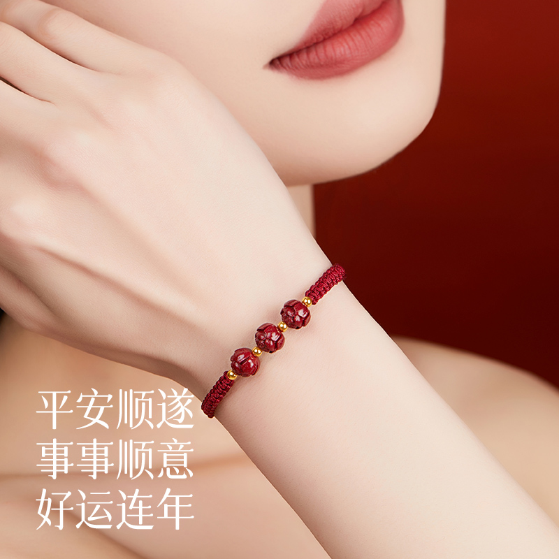 2025年新款考研上岸原矿朱砂莲花红绳手链女编织本命年闺蜜手绳