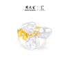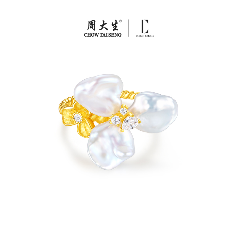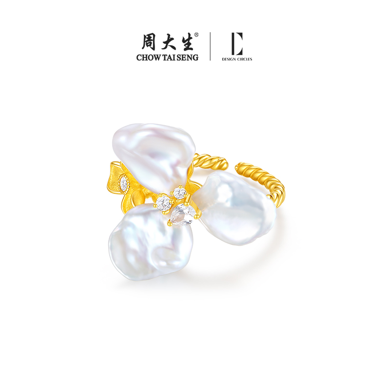 周大生DC白鸢尾戒指纯银复古巴洛克珍珠小众配饰开口指环生日礼物