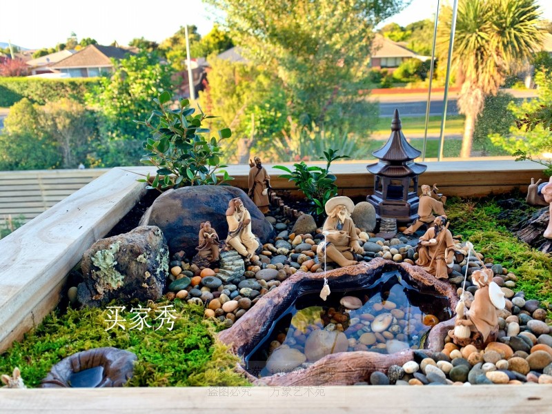 钟馗水浒三国饮酒吹萧题诗弹琴中国风人物盆景微型陶瓷摆件装饰品