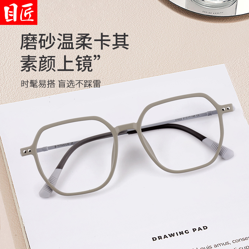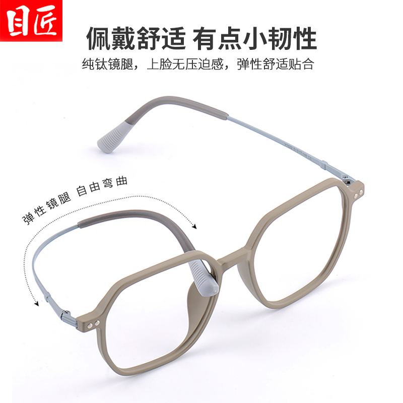 超轻纯钛磨砂卡其色近视眼镜框女可配度数多边形防蓝光倒梯形镜架