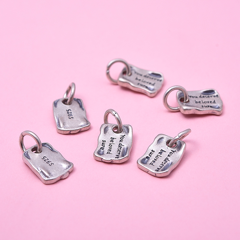 925纯银复古饰品配件 英文牌吊坠 手工串珠diy材料手链挂坠配件