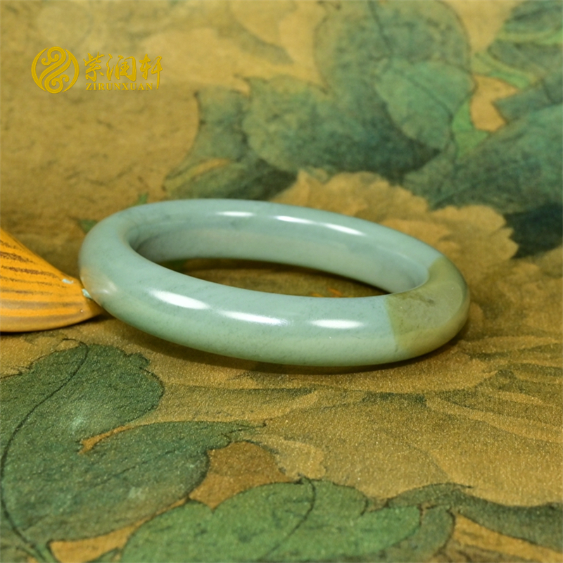 紫润轩新疆和田玉沙枣青籽料手镯59MM留糖皮高油哑光肥厚条传家级