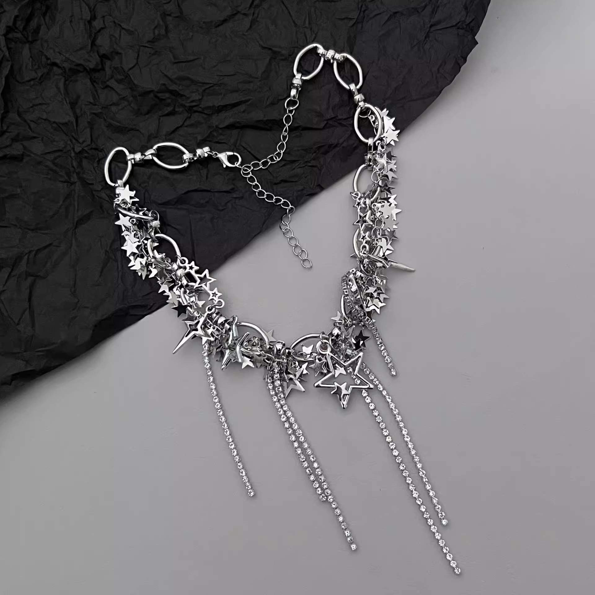 五角星多层叠加流苏星星亮片项链锁骨链甜酷辣妹高级感轻奢颈链
