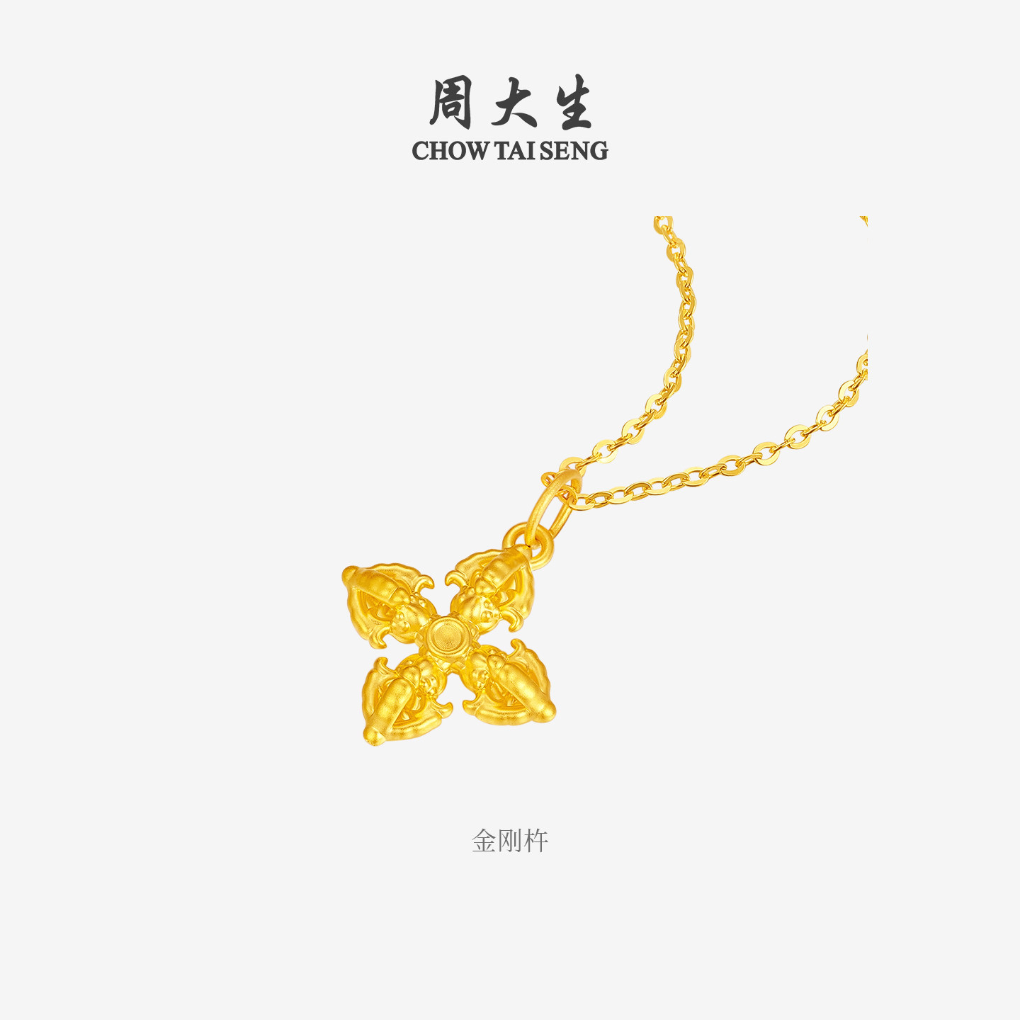 周大生黄金金刚杵吊坠女足金硬金铜钱貔貅情侣挂坠圣诞礼物送女友