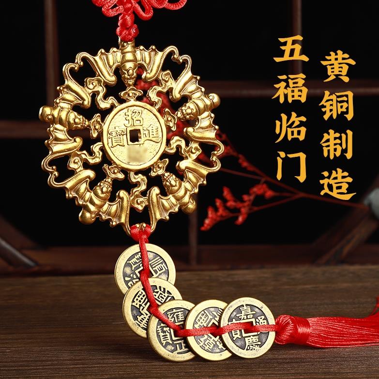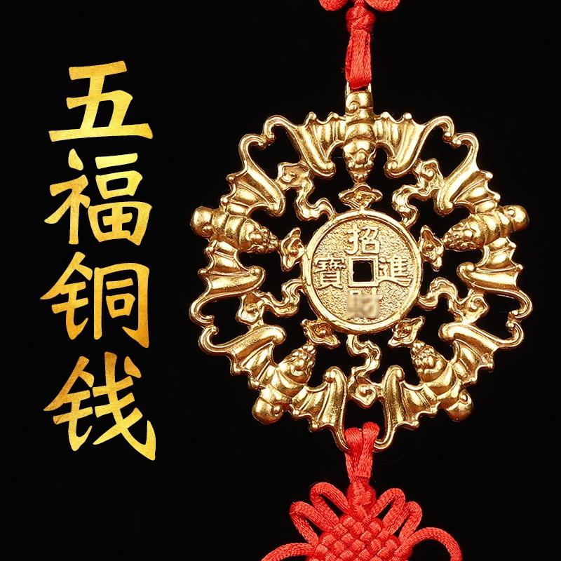 铜蝙蝠挂件五福临门铜钱饰品福鼠挂件店铺收银汽车摆件福鼠吊金钱
