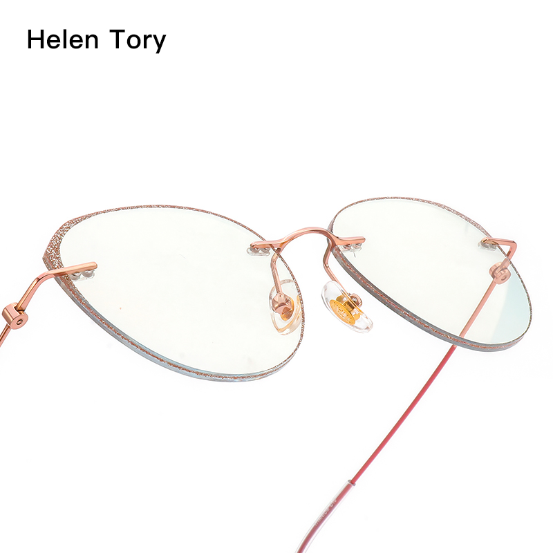 HelenTory近视眼镜女韩版潮网红款无框复古防蓝光可配度数镜片