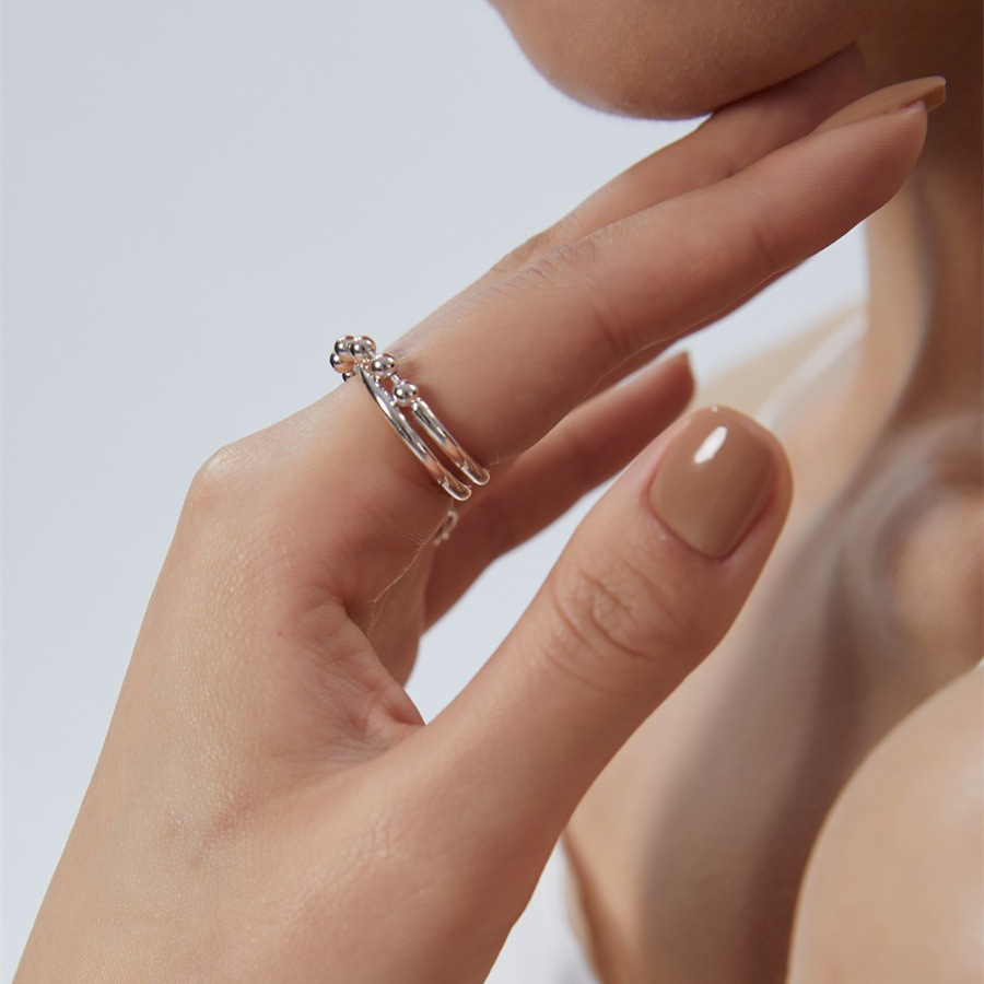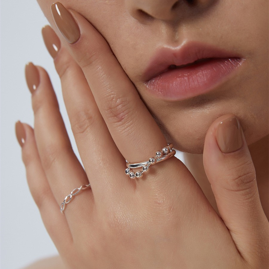 韩版简约圆珠戒指女复古时尚气质链条可调节指环嘻哈食指戒