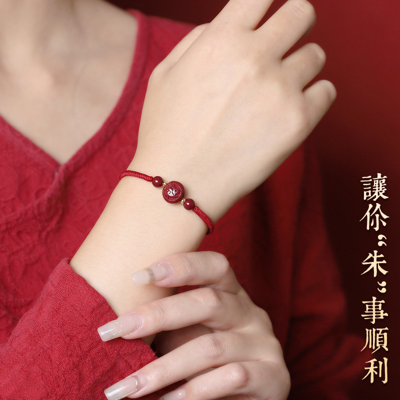 天然朱砂十二生肖红绳手链女本命年男编织手绳紫金砂手串正品
