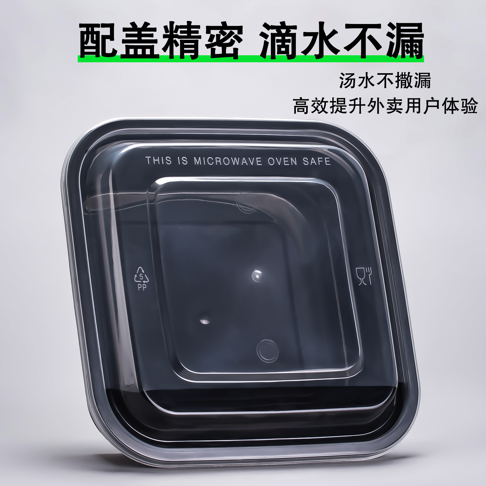迅胜美式正方形一次性餐盒1000ML外卖打包盒商务黑色塑料便当饭盒