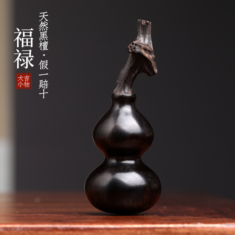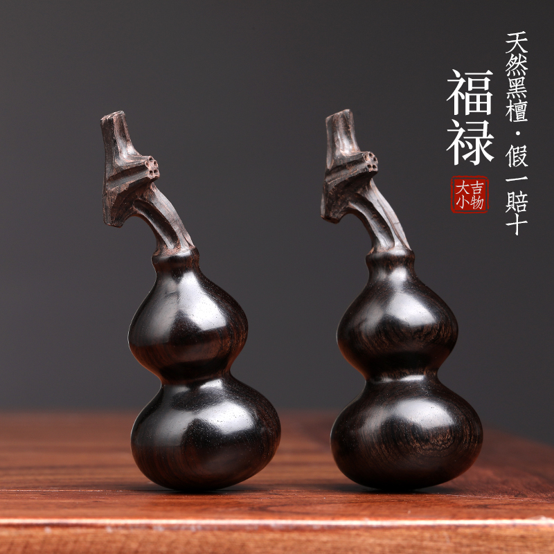 黑檀木葫芦摆件文玩手工龙年吉祥物生肖龙头葫芦手把件小挂件福禄