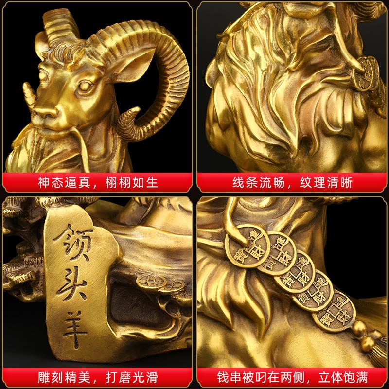 领头羊铜羊摆件家居客厅办公室装饰品纯黄铜三阳开泰生肖羊工艺品