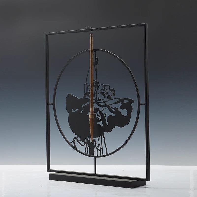 新中式毛笔架金属摆件样板间客厅玄关酒柜书房书桌办公桌禅意摆设