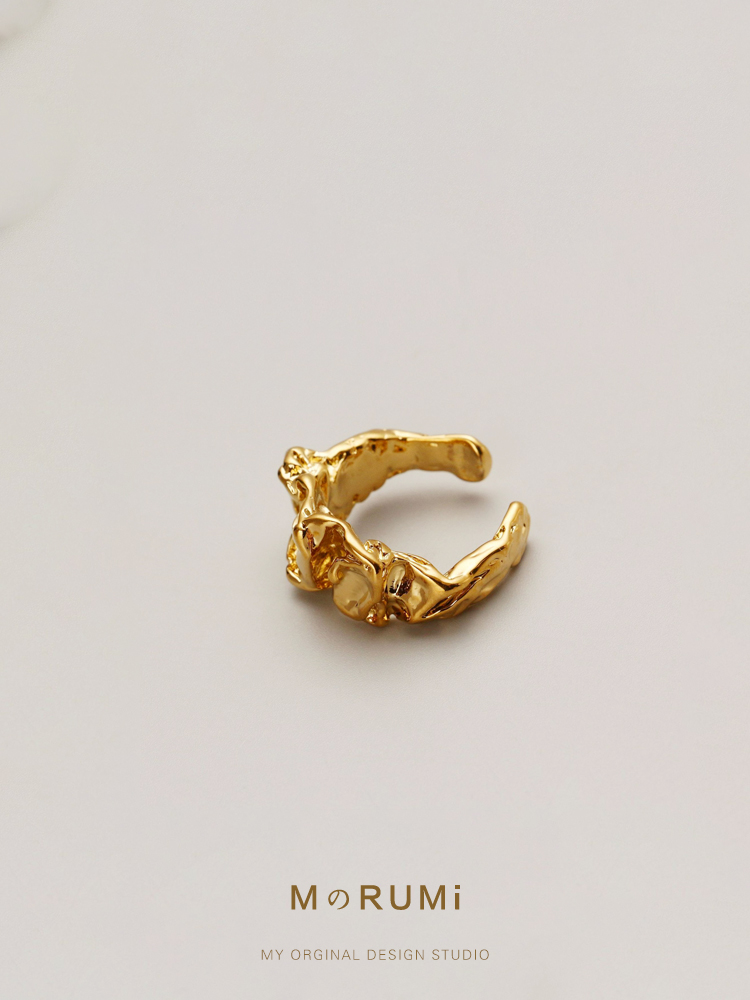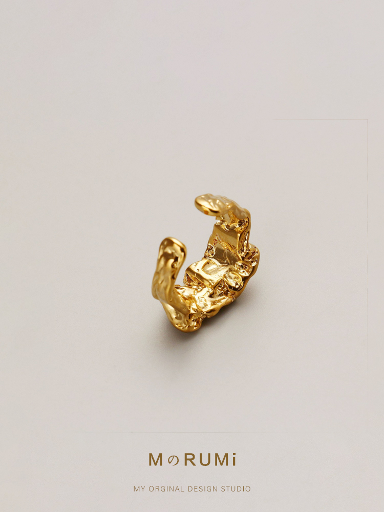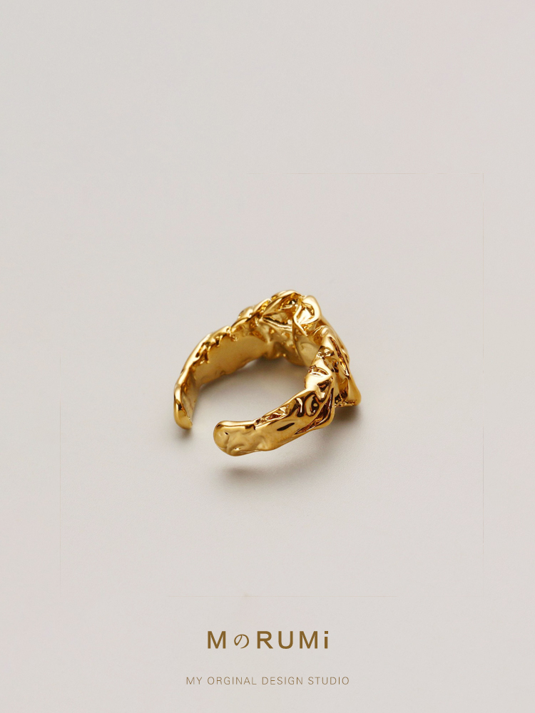 褶皱不规则个性设计高级感18K金色真空电镀开口可调节戒指环女
