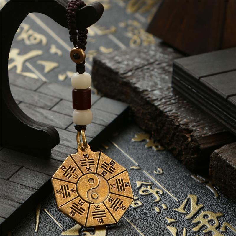 黄铜五行八卦福挂件纯铜随身阴阳钥匙扣护身符夫妻属相不合防小人