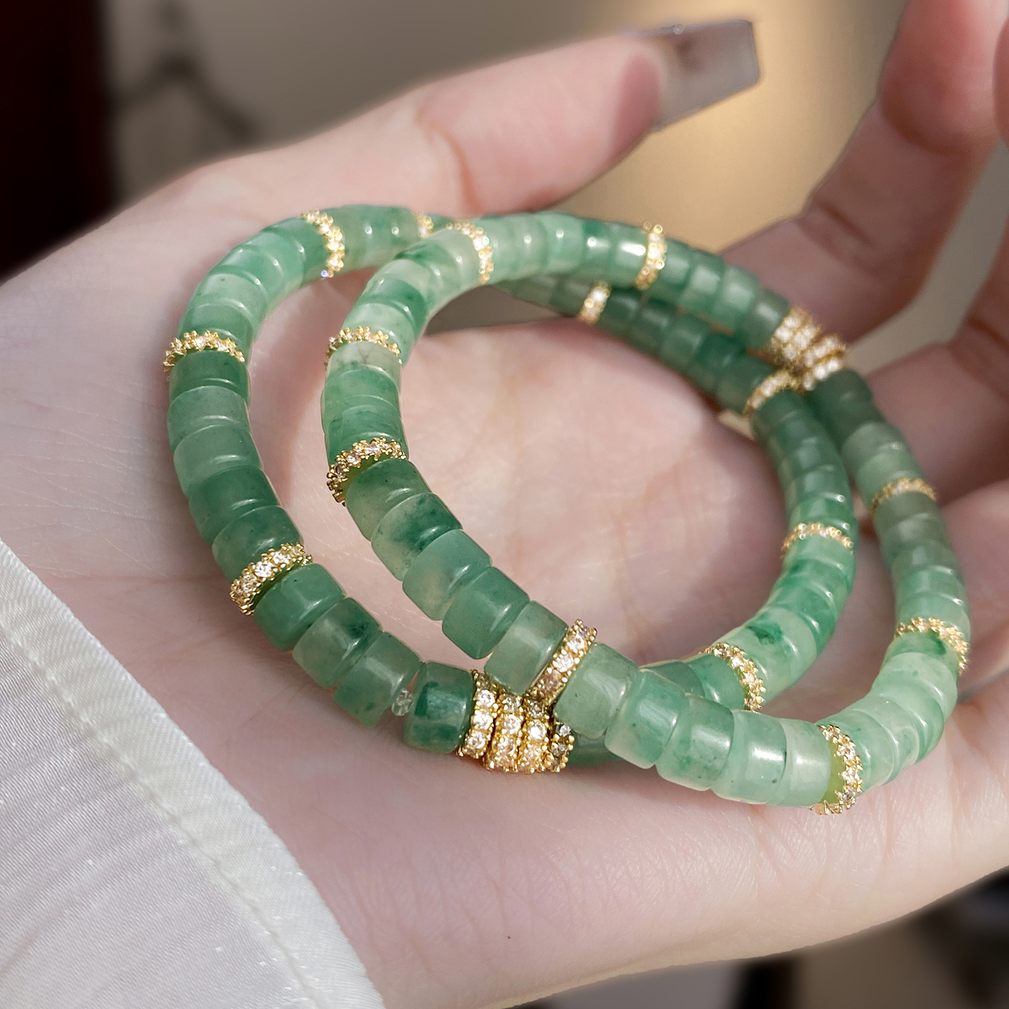 盘盘翠响手串 | 镀金算盘药片切非洲翠珠串手链天然水晶翡翠