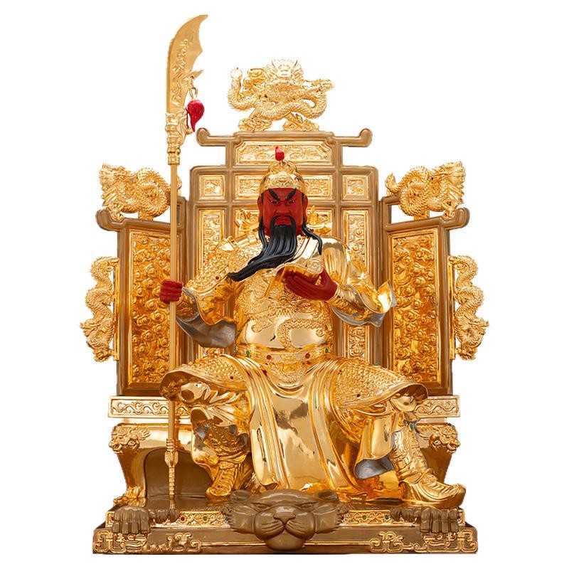 纯铜鎏金关圣帝君神像家用店铺供奉武财神春秋关公坐像关二爷铜像