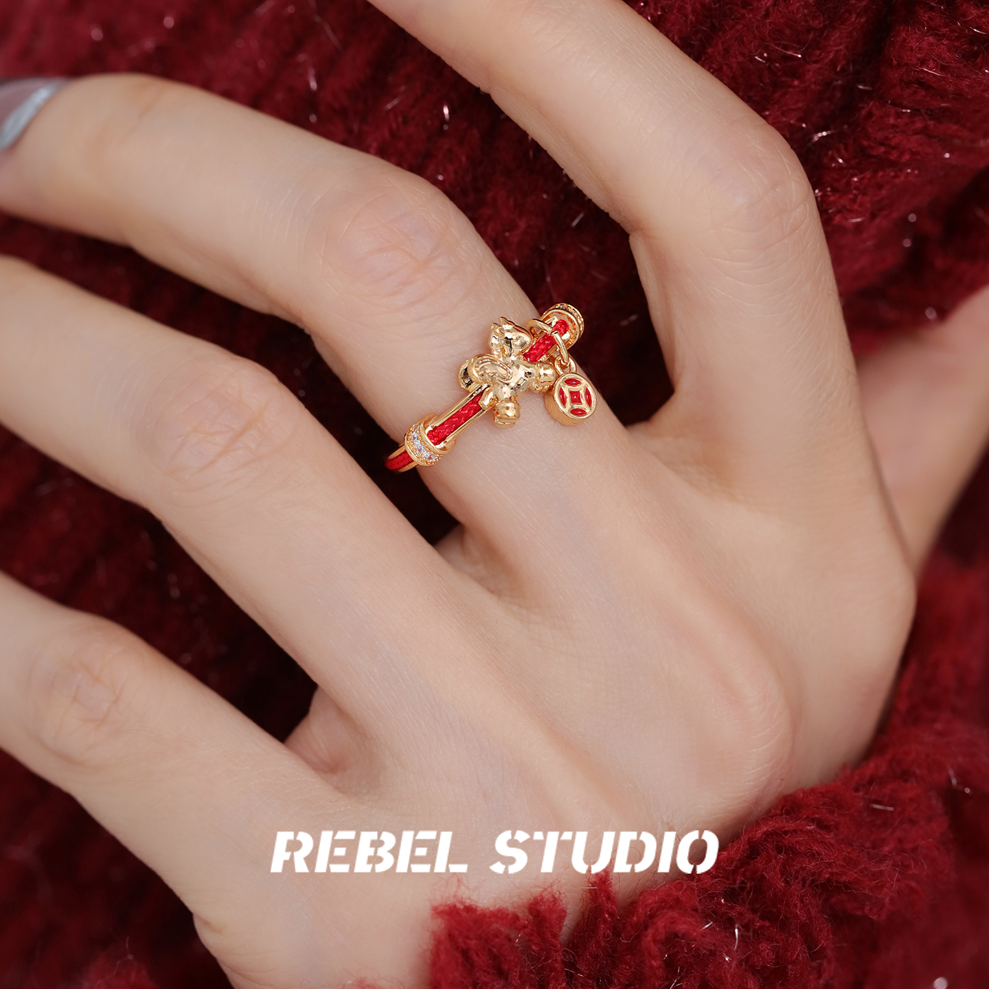 马上有钱鸿运戒指女新中式复古高级感新年发财精致新款开口食指戒