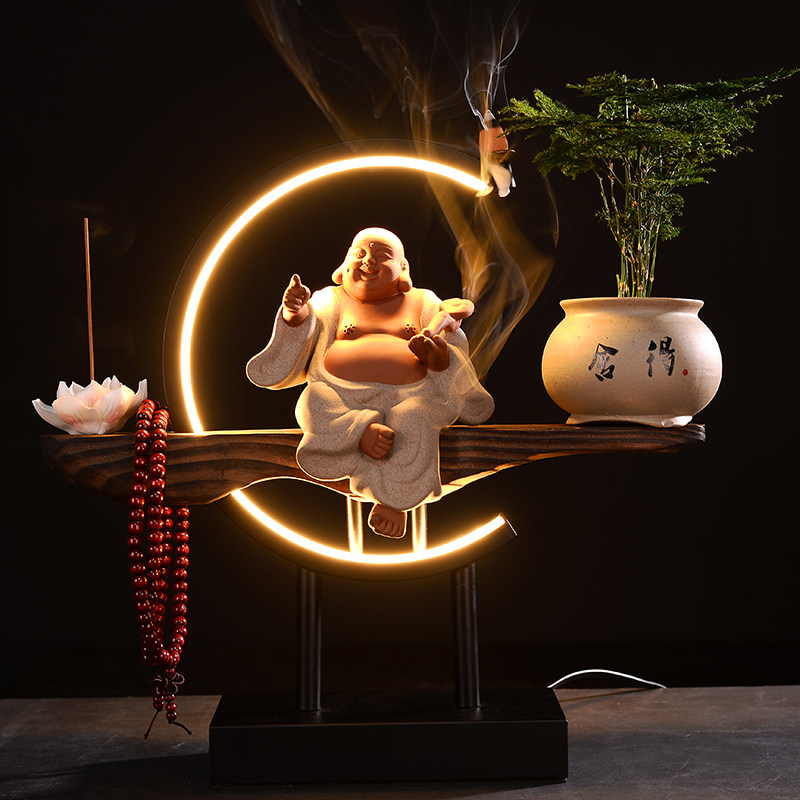 新中式弥勒佛摆件大肚佛像开心笑佛招财家居客厅门店摆设装饰陶瓷