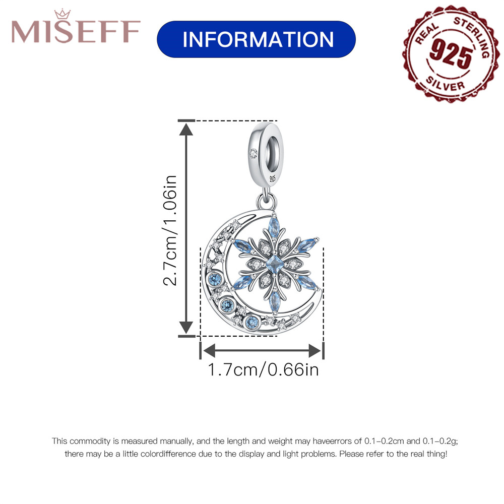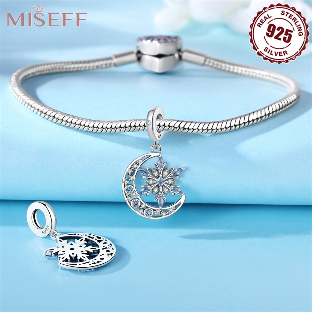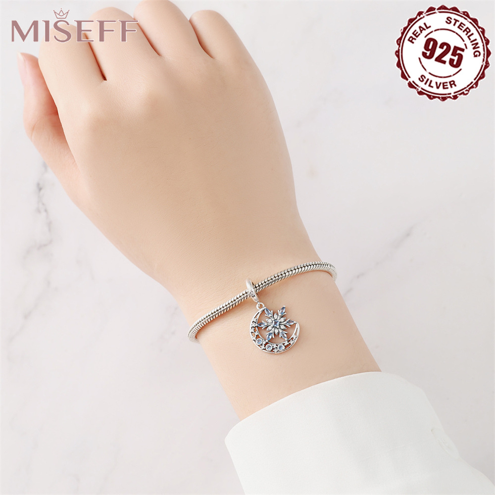 蓝色月亮雪花吊坠925纯银珠子轻奢镶钻串珠DIY手链项链饰品配件