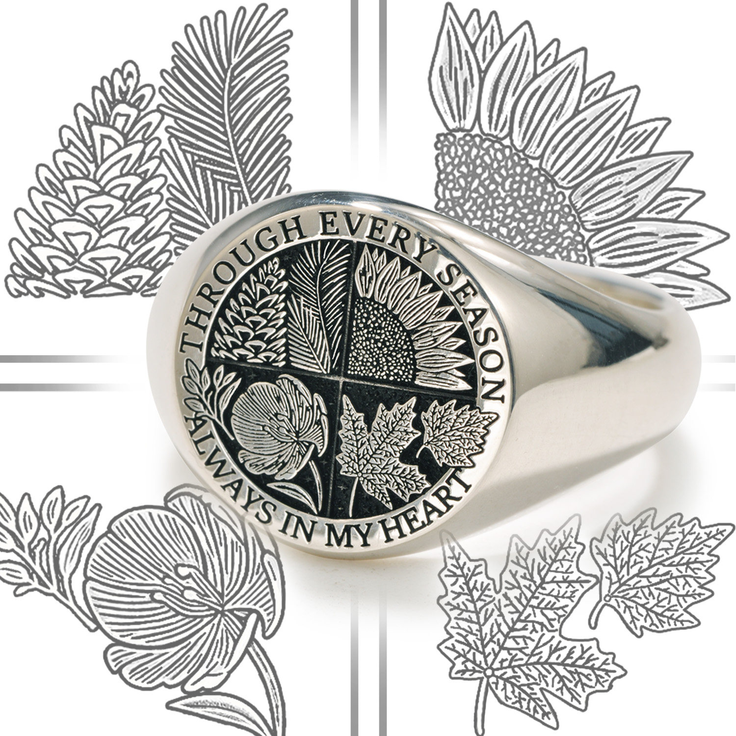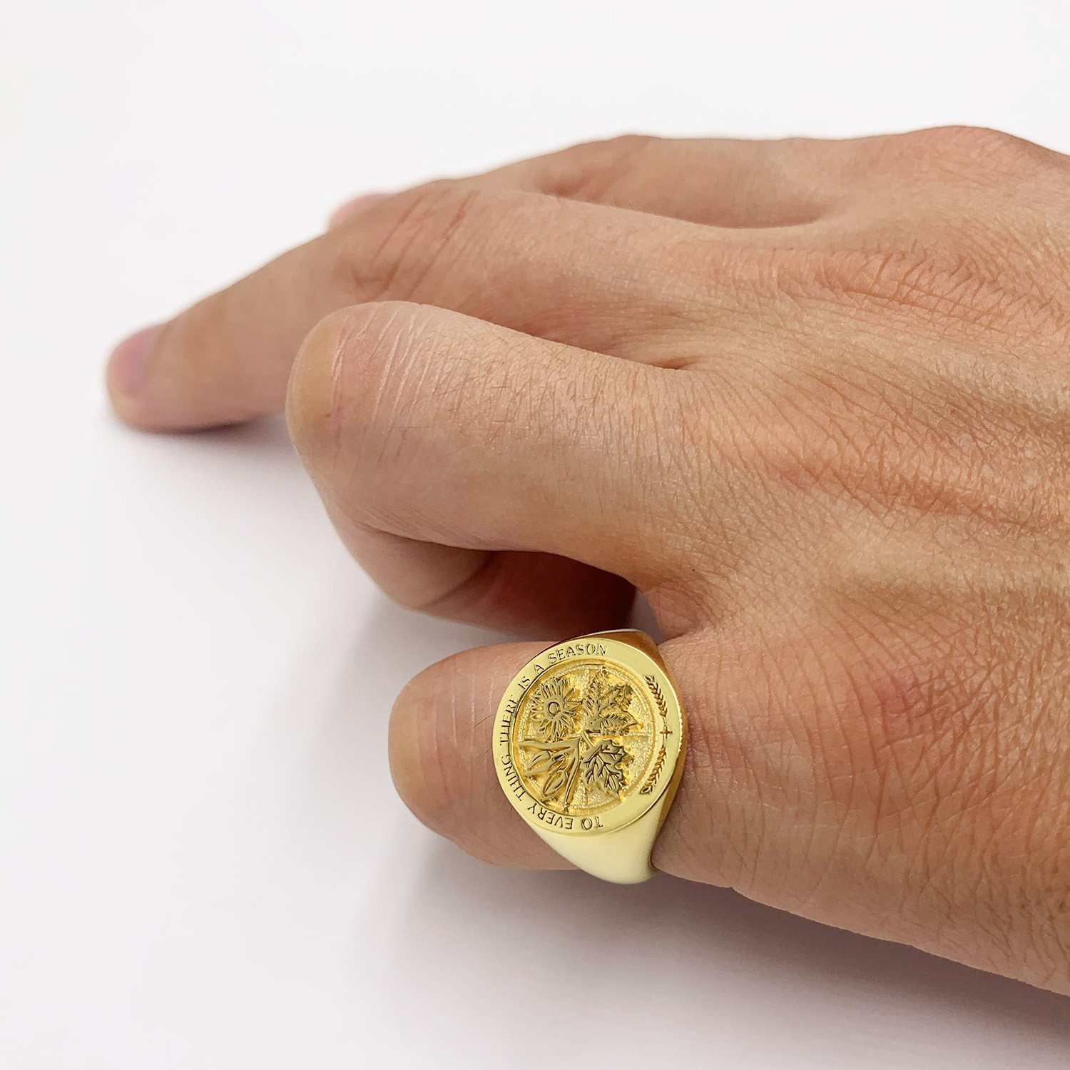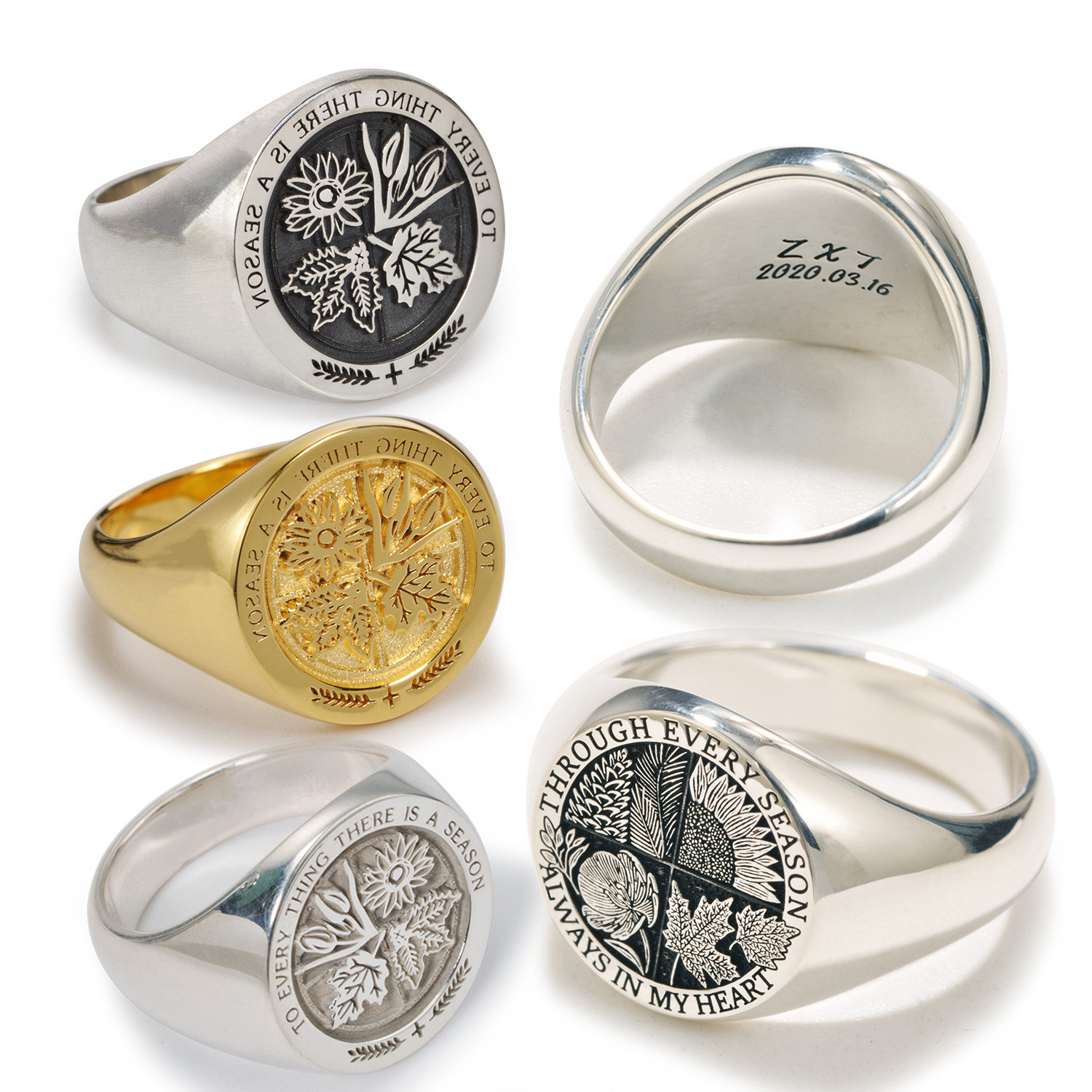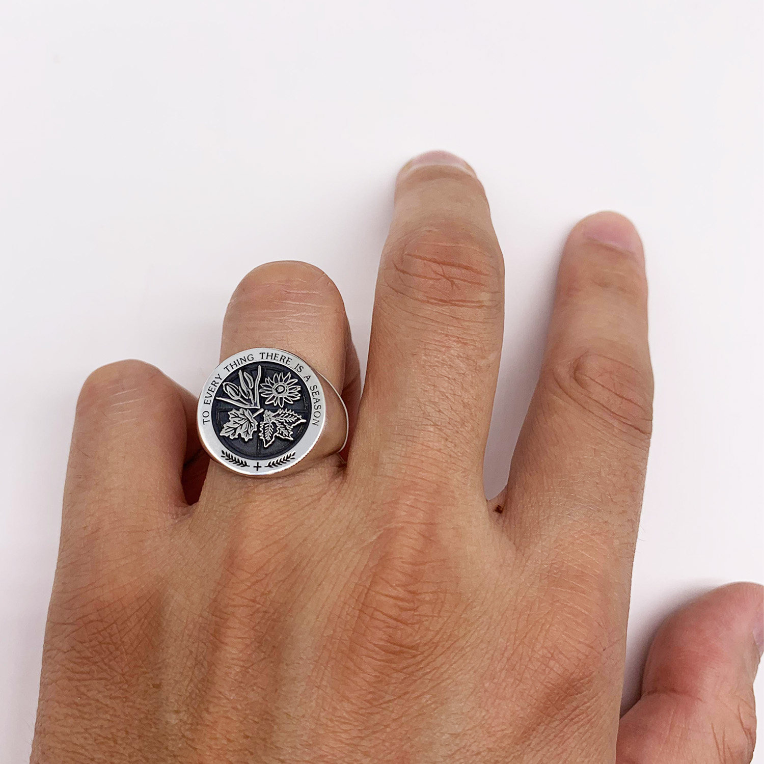 柒玥 世间凡事皆有定期925银戒指男女定制十字架个性印章四季花卉