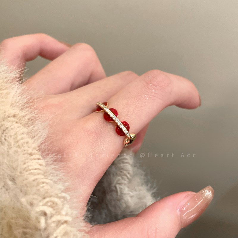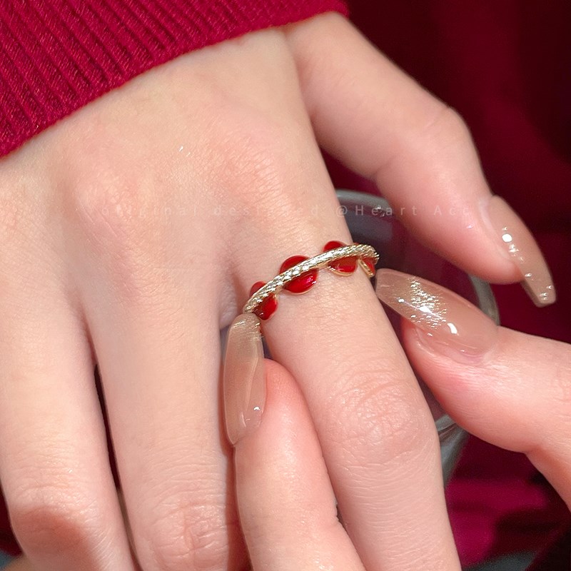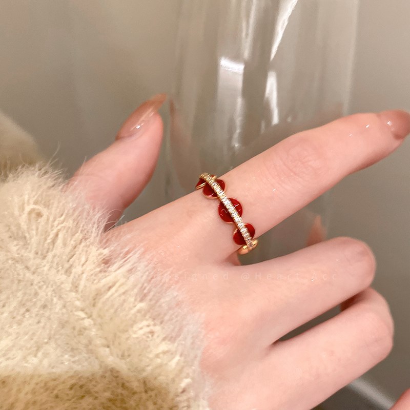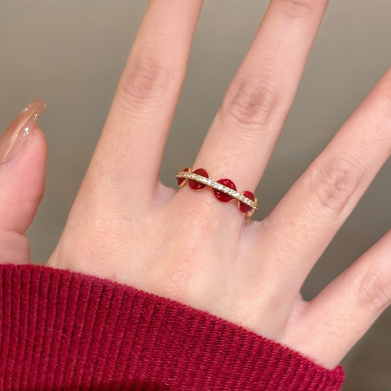当前位置:首页>商品详情>安可拉红色圆形锆石开口戒指女轻奢小众精致食指R戒新年高级感尾