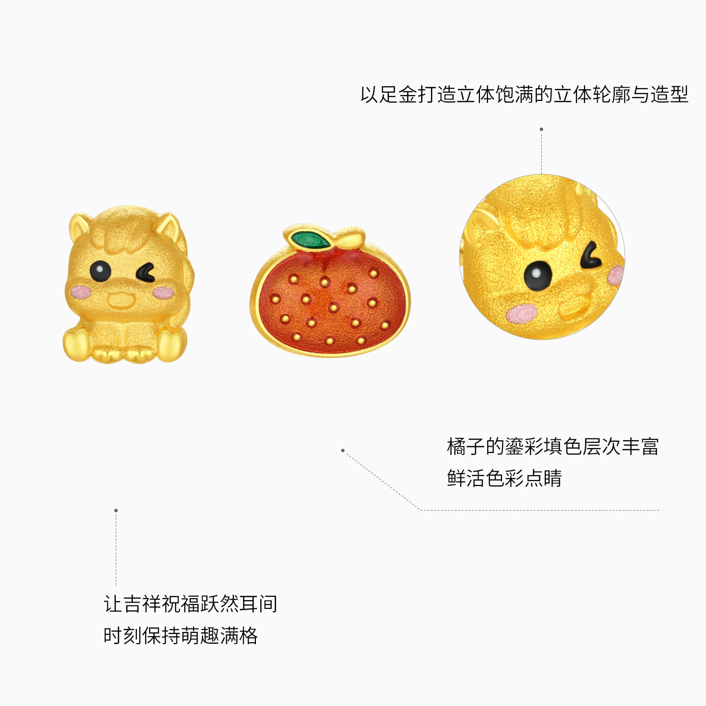 潮宏基好事发生足金耳钉黄金耳饰生肖马大吉大利礼物本命年 计价