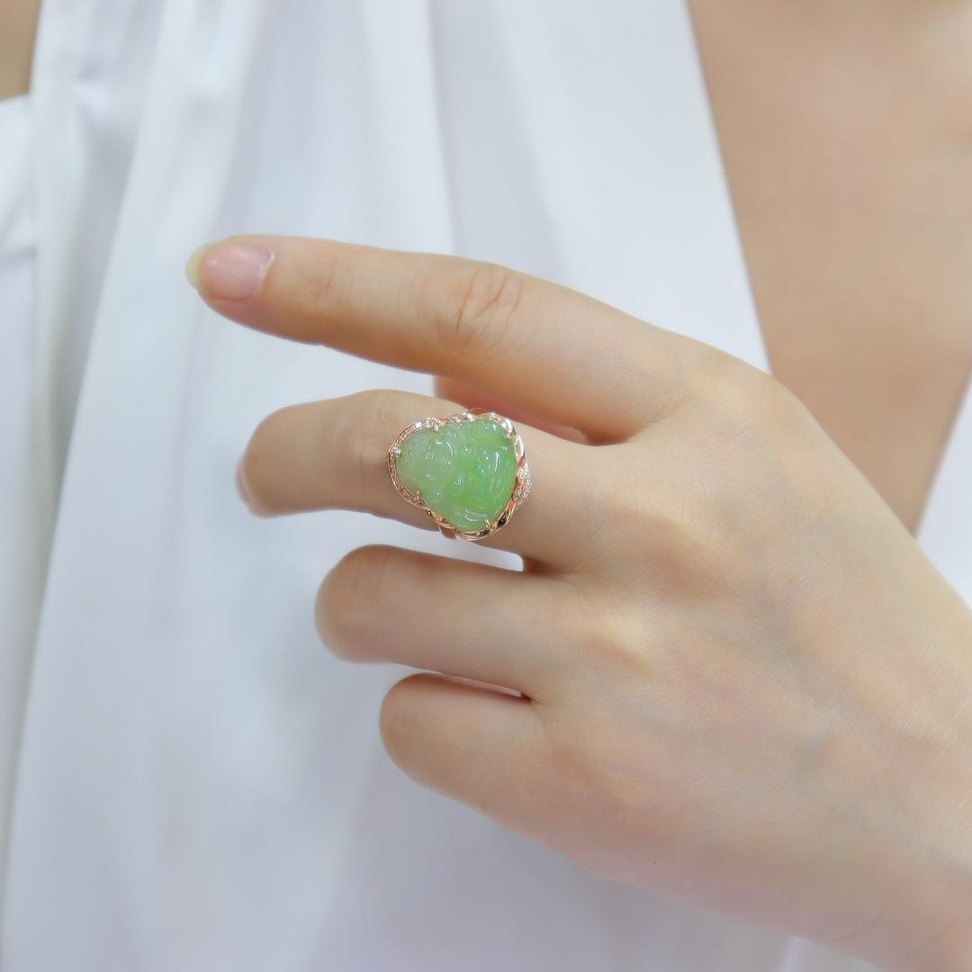 年货节礼物天然和田玉戒指女a货苹果绿碧玉佛公镶18k金指环送妈妈