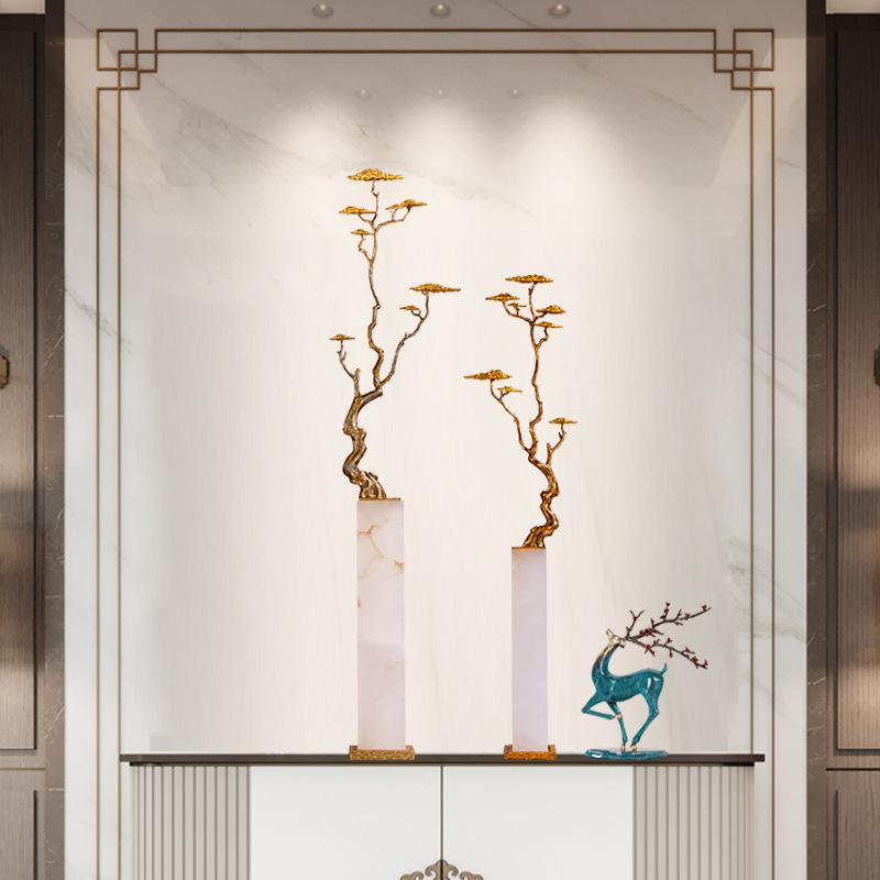 招财迎客松玄关竖高摆件高端大气别墅客厅电视柜装饰乔迁开业送礼