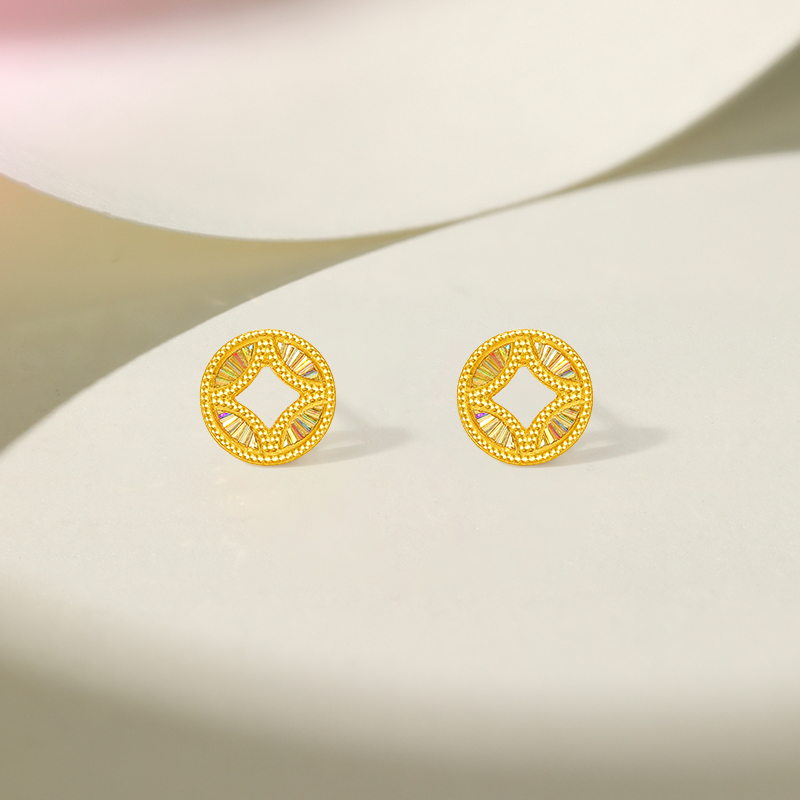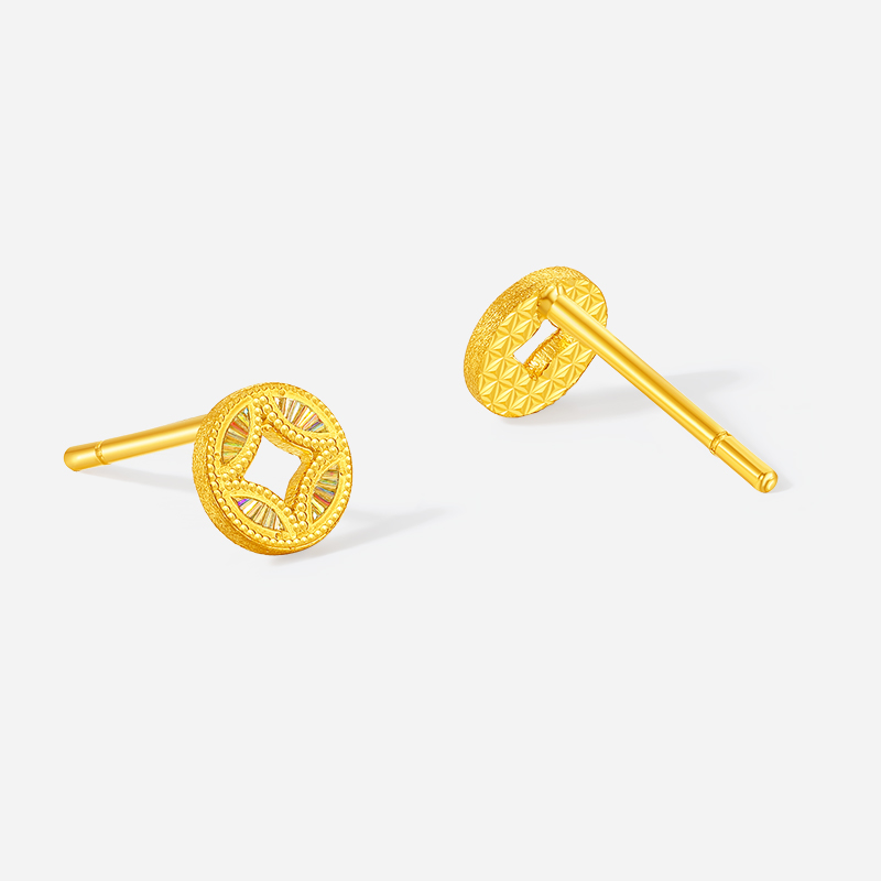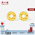 周六福5G足金黄金计价耳饰有钱必应爆闪炫彩碎碎铜钱耳钉520礼物