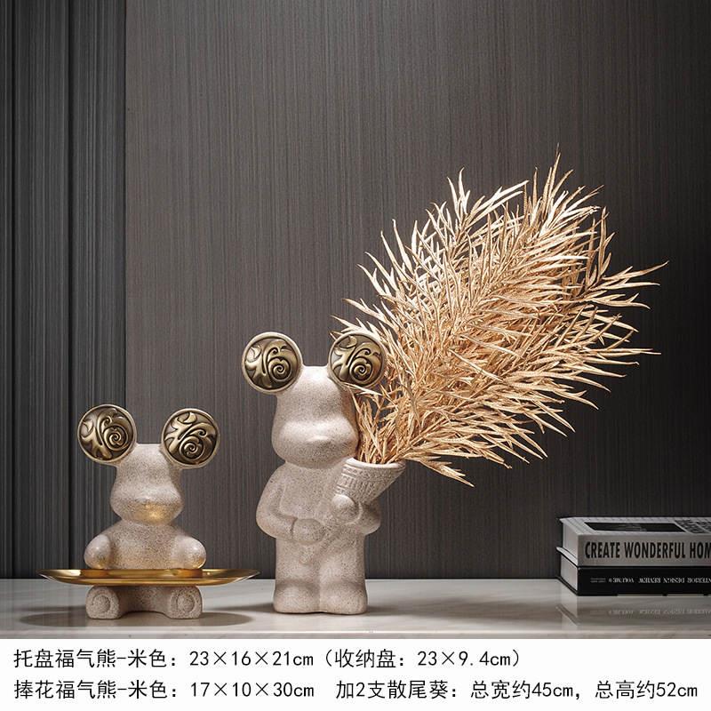 搬礼物乔迁新居高档招财熊捧花摆件装饰品新房入宅
