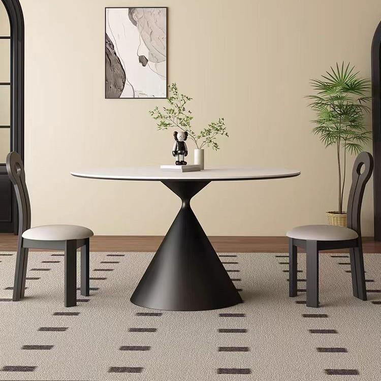 法式奶油风岩板圆形餐桌家居现代简约圆桌小户型家用饭桌椅组合