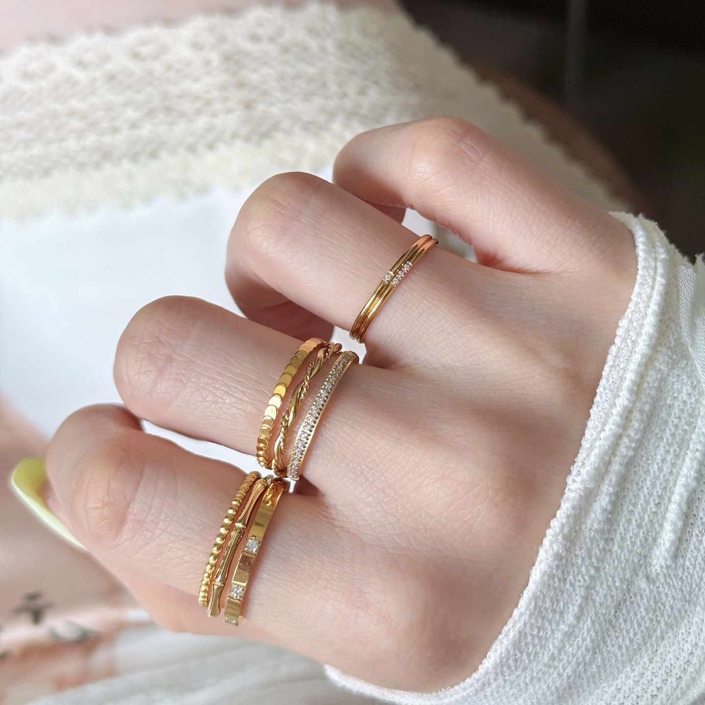 高级感钛钢叠戴排钻戒指细圈简约金色竹节指环小众设计尾戒女小指