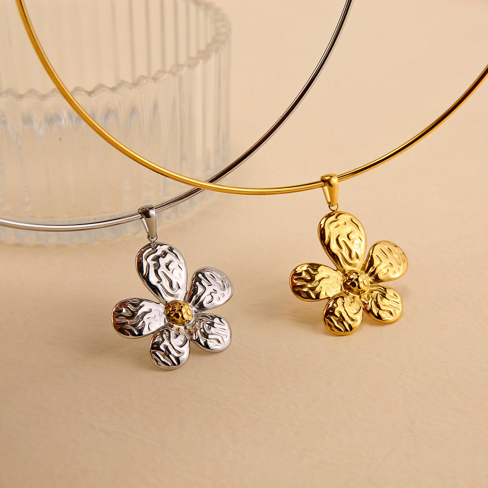 跨境热销时尚气质通体不锈钢花瓣项圈简约设计花朵锁骨链不褪色