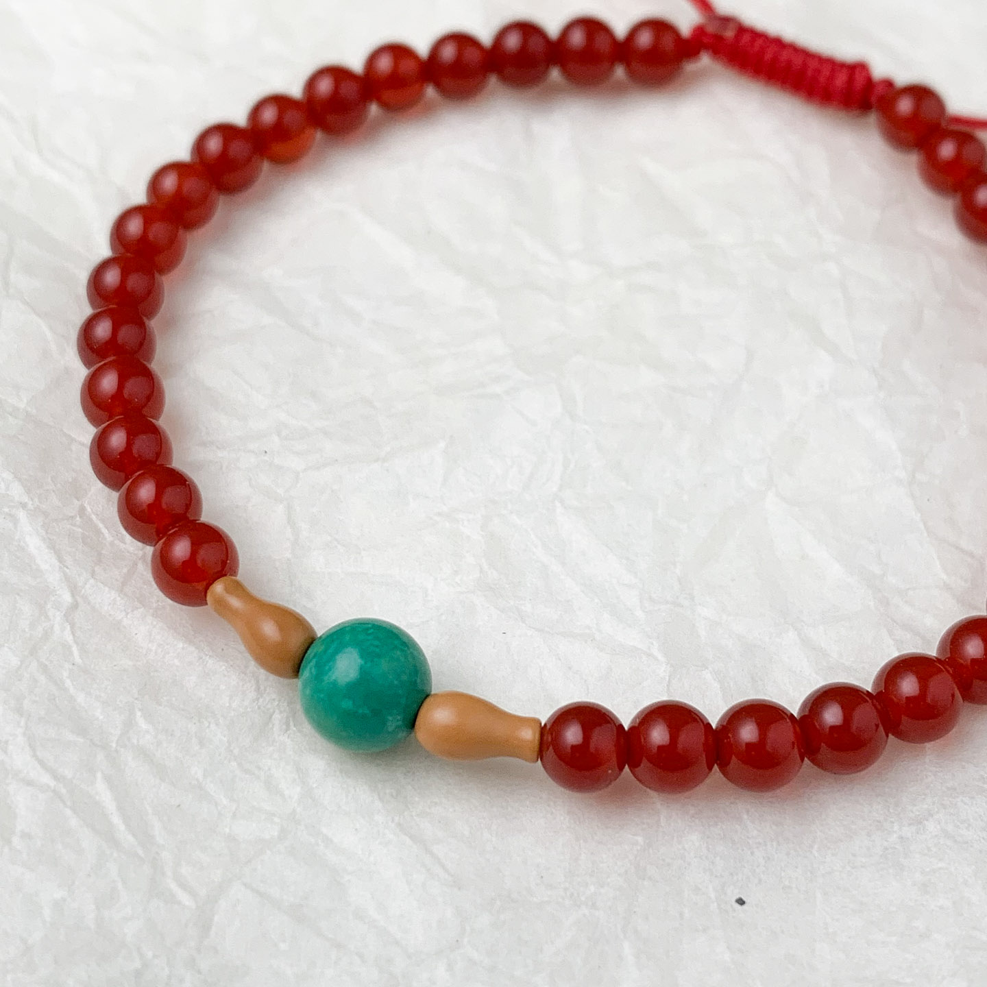 原创设计新中式绿松石红玛瑙手绳复古串珠编织简约手链国风女手绳