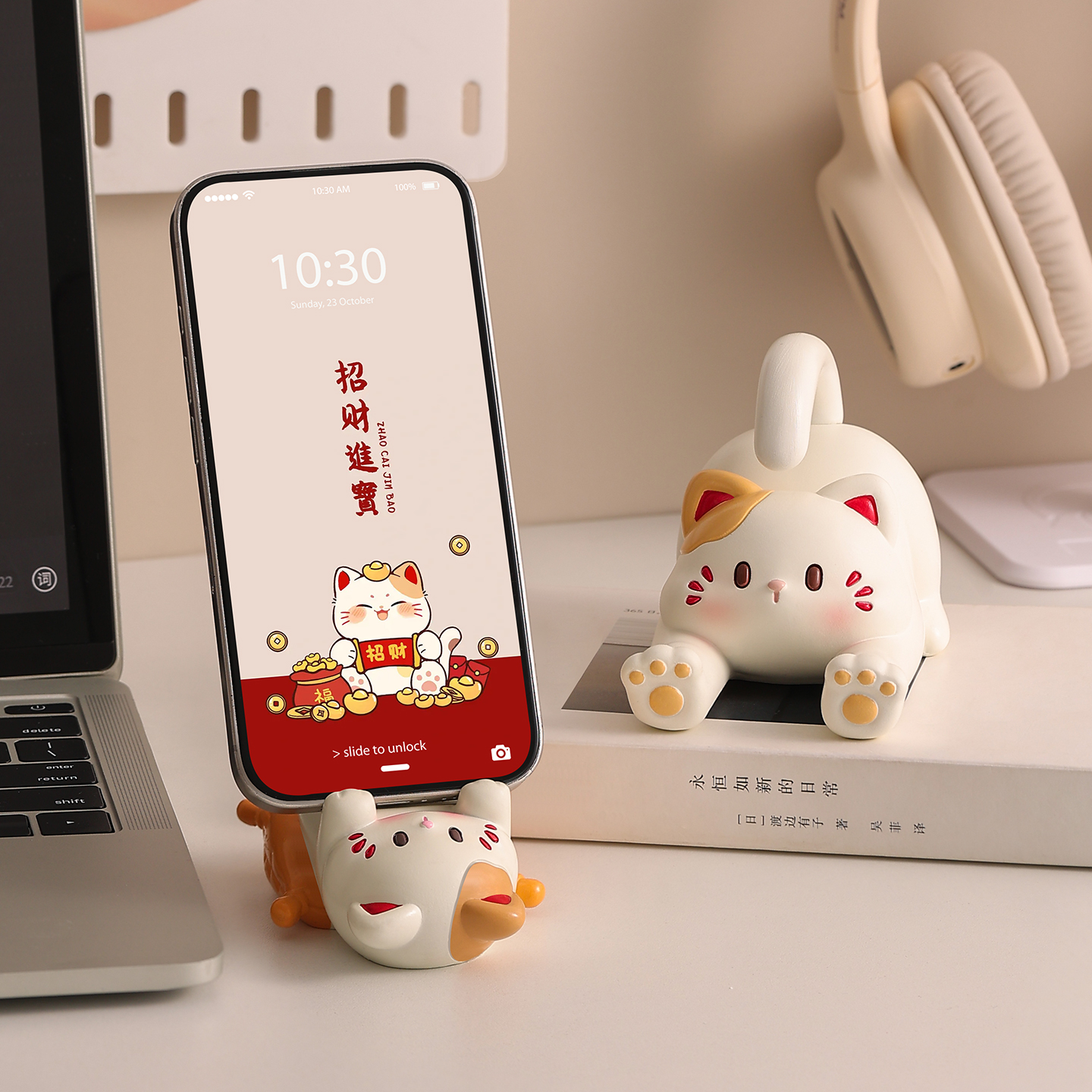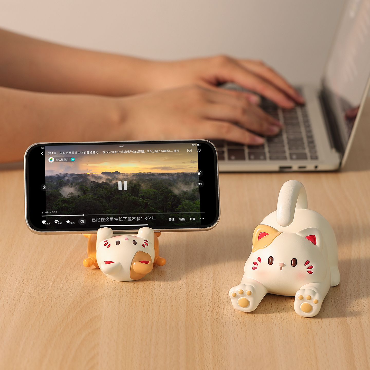 治愈系猫咪手机支架摆件办公室桌面装饰工位情绪稳定神器生日礼物