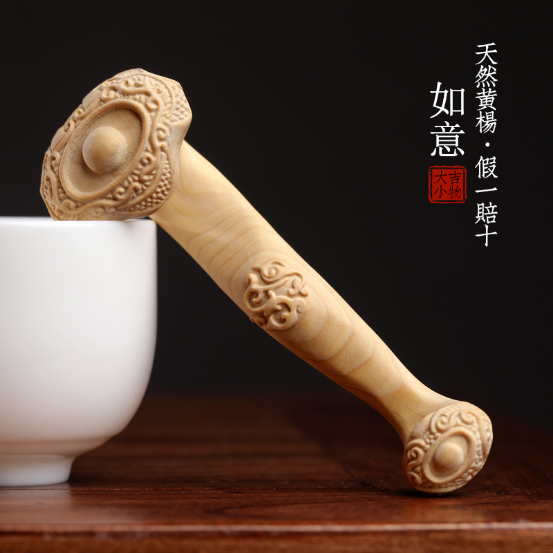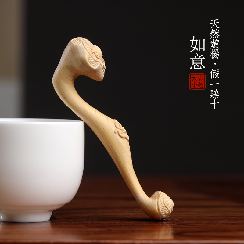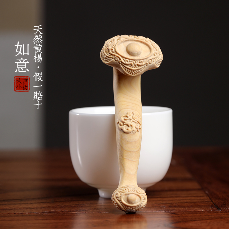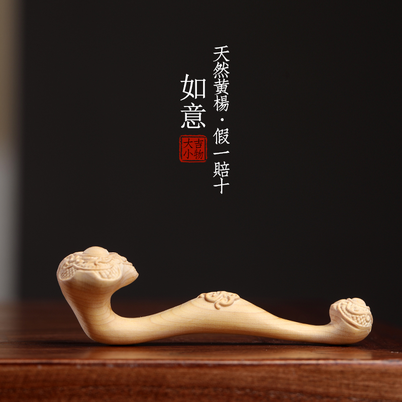 天然小叶黄杨木雕刻事事如意手把件把玩中式好运小摆件桌面工艺礼