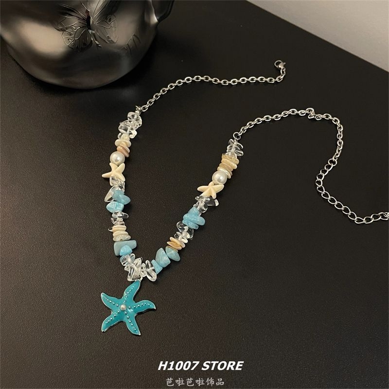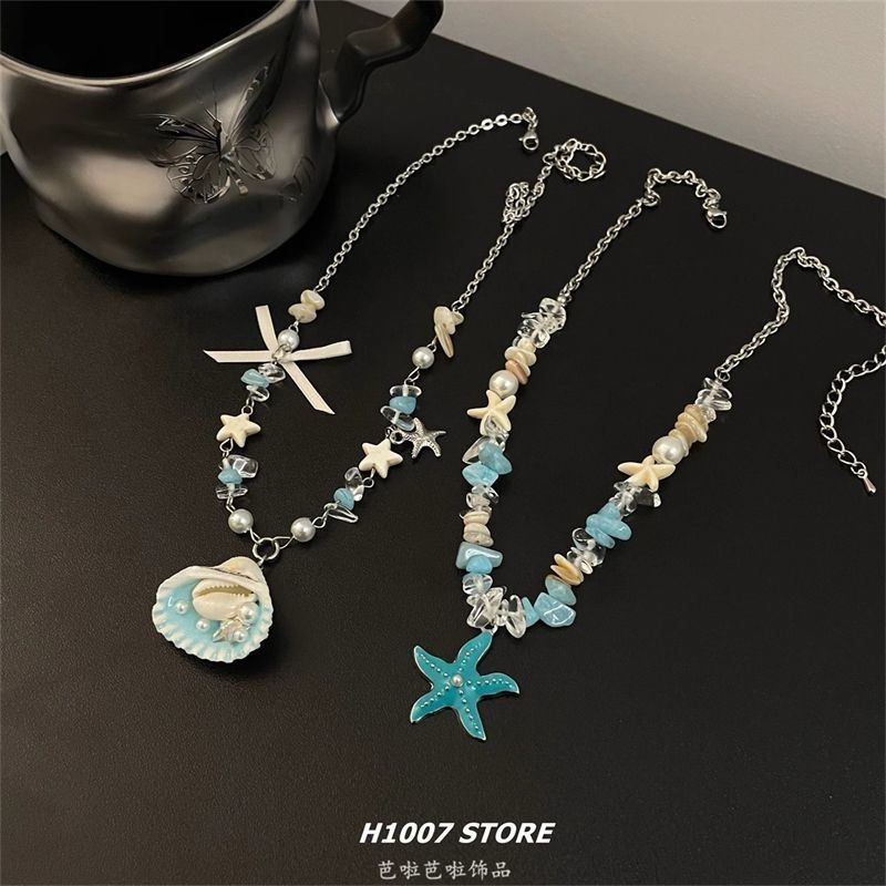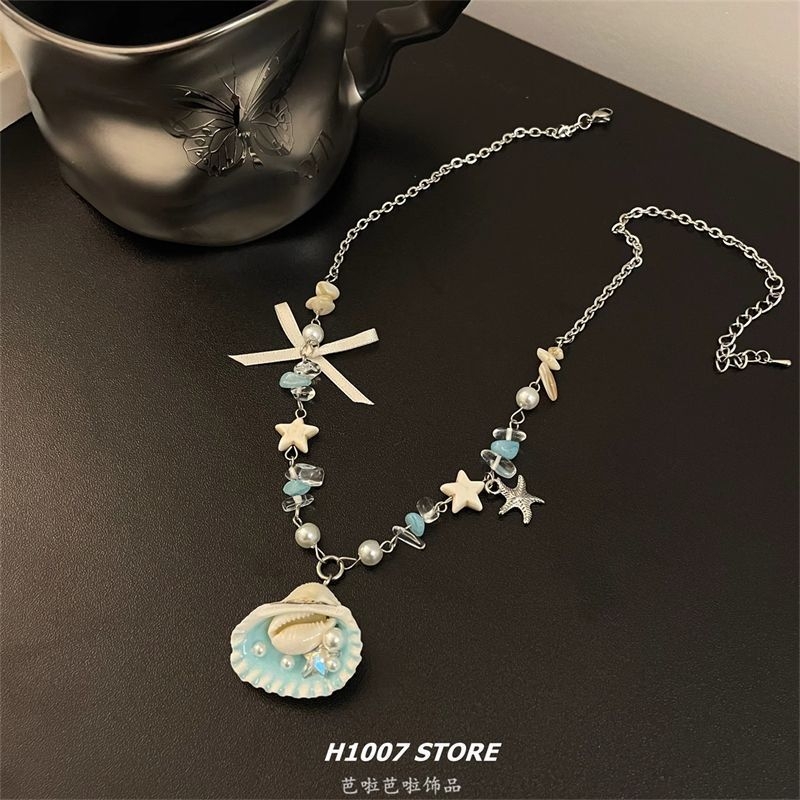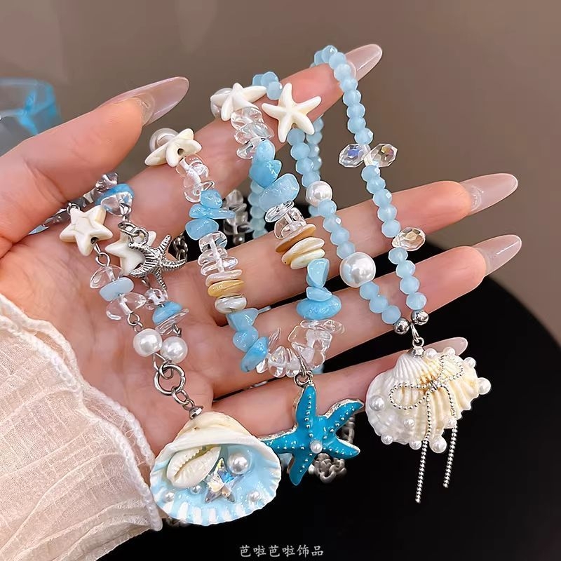韩系珍珠贝壳海星串珠项链度假风可爱仙女小众锁骨链配饰海边ins