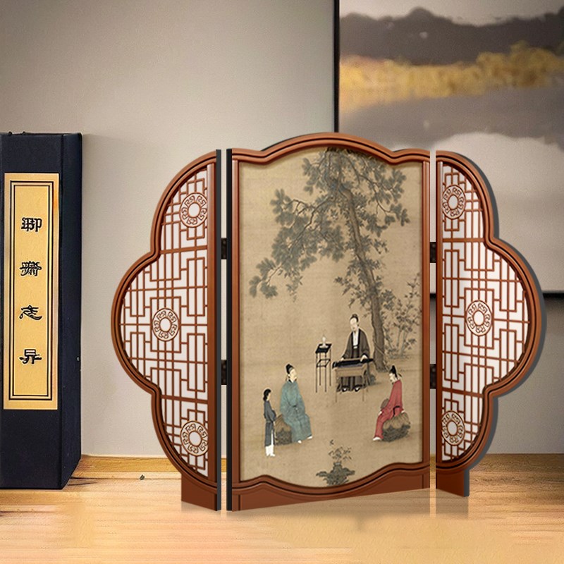 中古风客厅桌面边柜装饰摆件装饰画高级感玄关柜可折叠屏风摆画