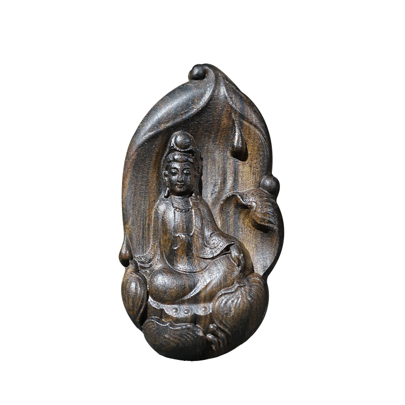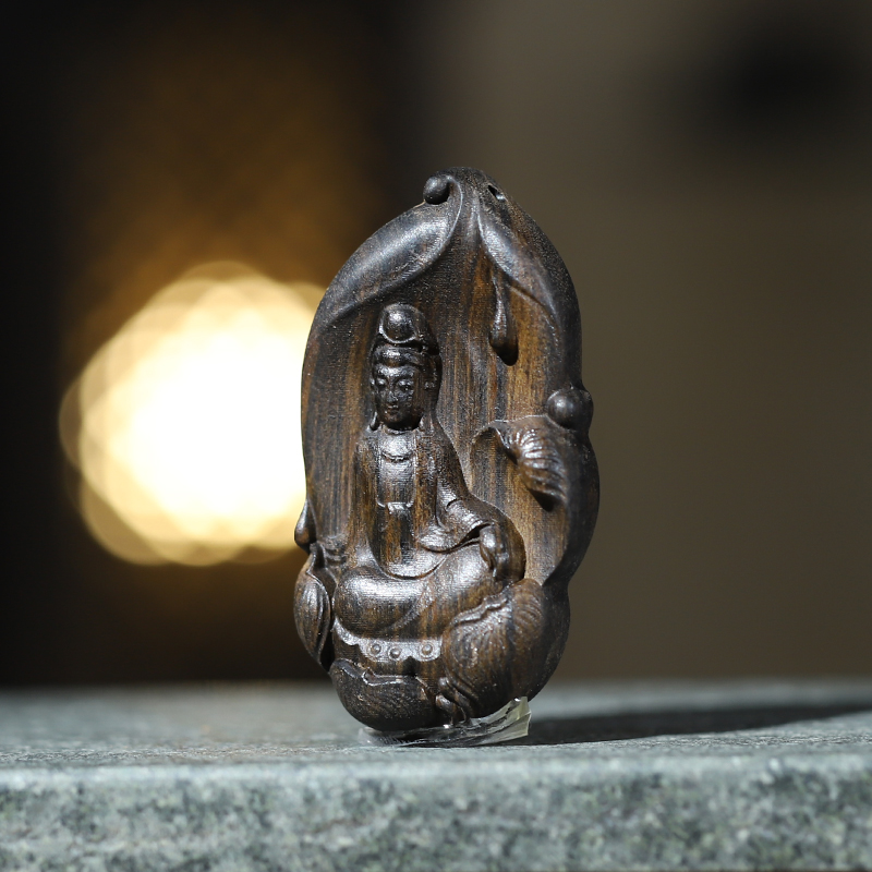 菩萨棋沉香木雕刻单面滴水观音牌子吊坠中国风手把件木质文玩脖挂