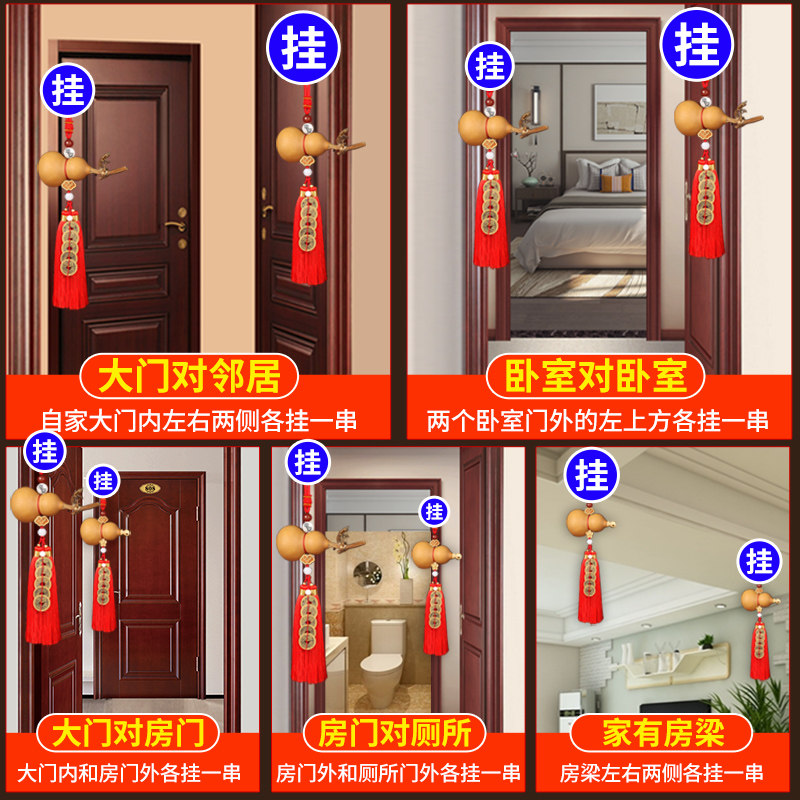 五帝钱门对门天然葫芦挂件黄铜大门对卧室邻居铜钱串吊吉祥中国结