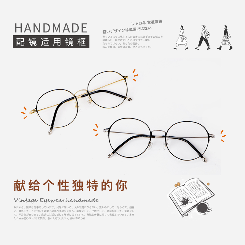 纯钛文艺眼镜框女超轻可配近视眼镜韩版潮网红款圆脸眼镜架男素颜
