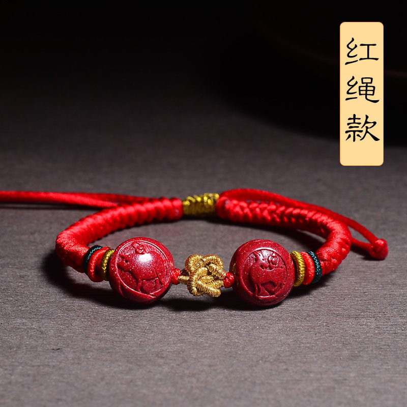 生肖属兔2024年佩戴吉祥物猪羊赐瑞朱砂手编红绳手链男女挂件饰品