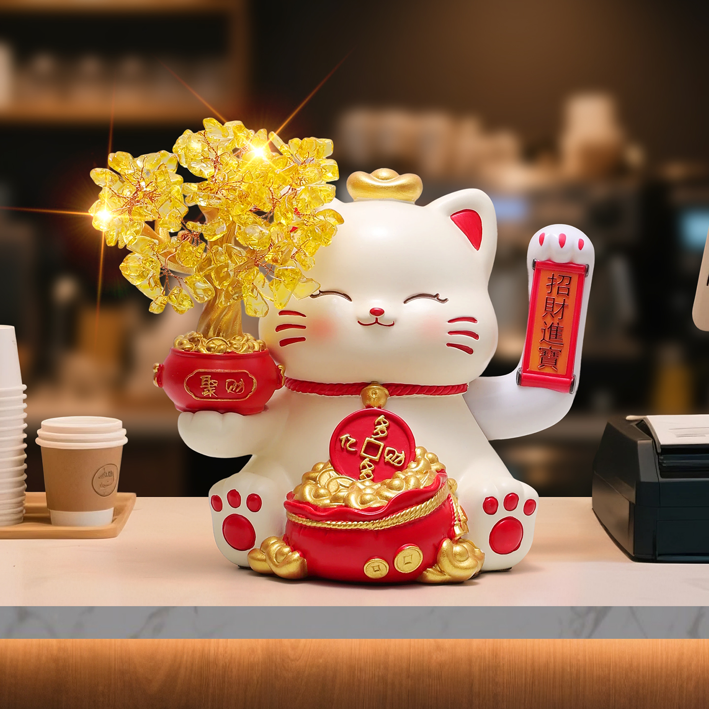 发财树招财猫摆件自动摇手店铺收银台前台招财装饰品新店开业礼物