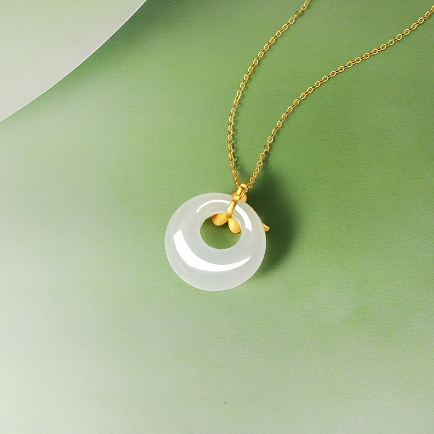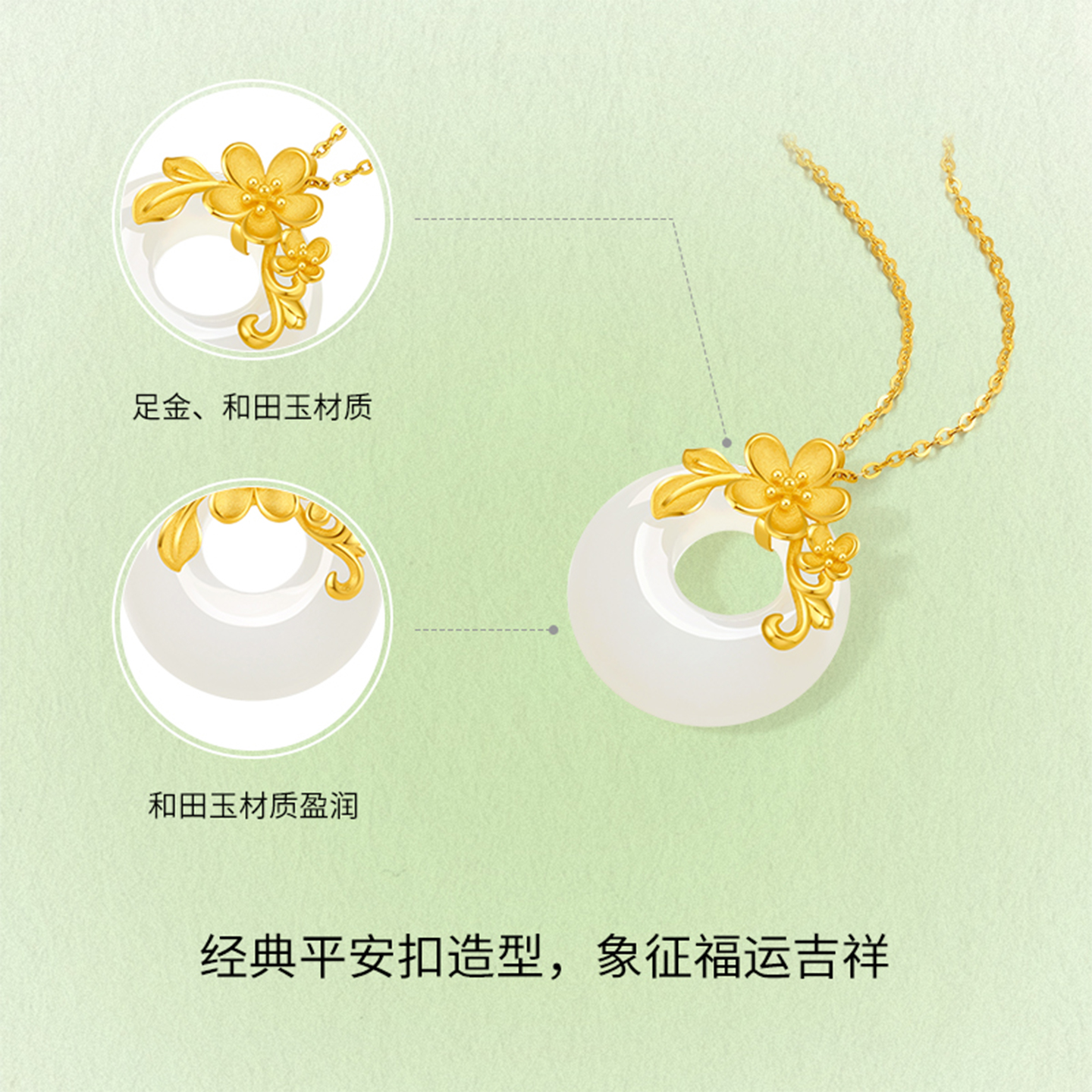 周六福和田玉吊坠女金镶玉足金平安扣梅花白玉坠挂件节日礼物